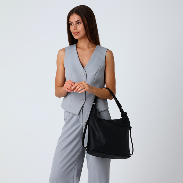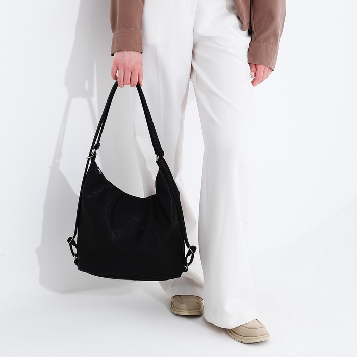 Сумка - мешок женская на молнии, 30×10×29 см, чёрная — Характеристики