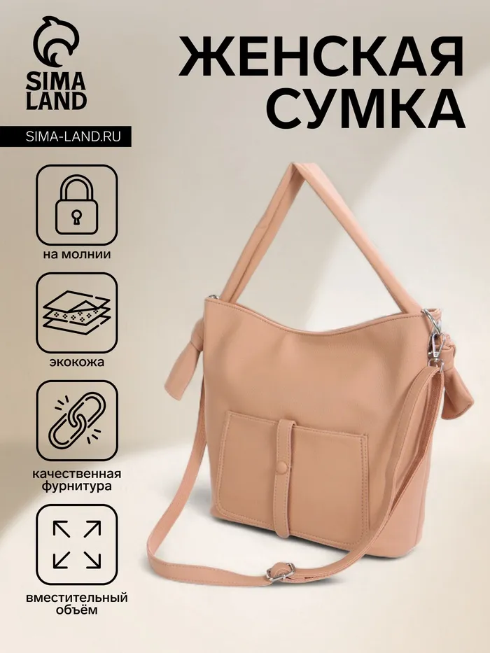 Сумка - мешок женская на молнии, 33×33 см, розовая — Характеристики