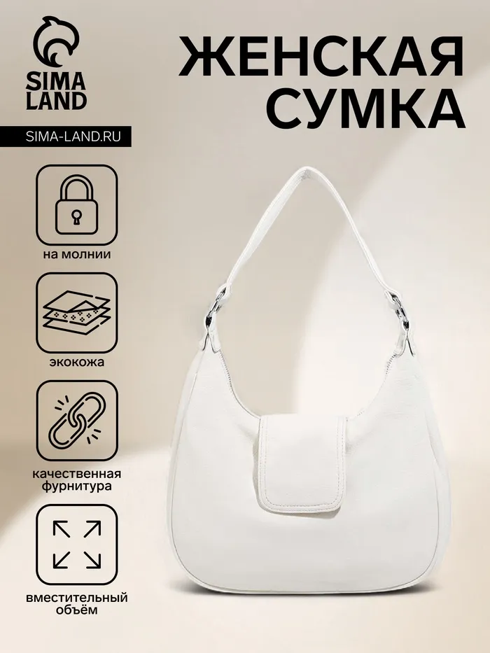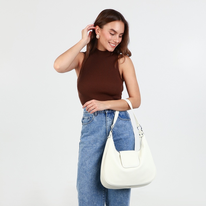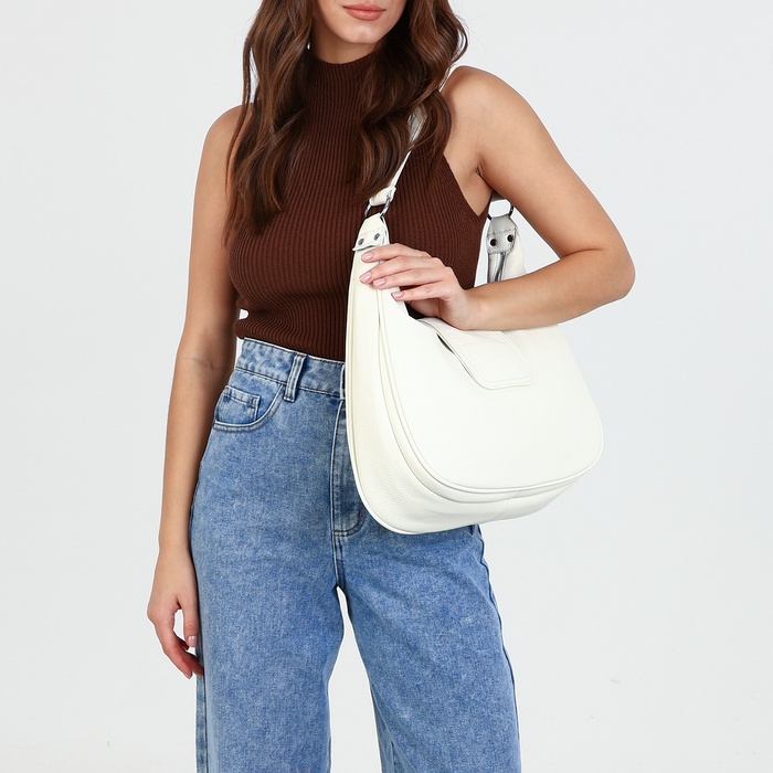 Сумка - мешок женская на молнии, 34×26×8 см, белая — Характеристики