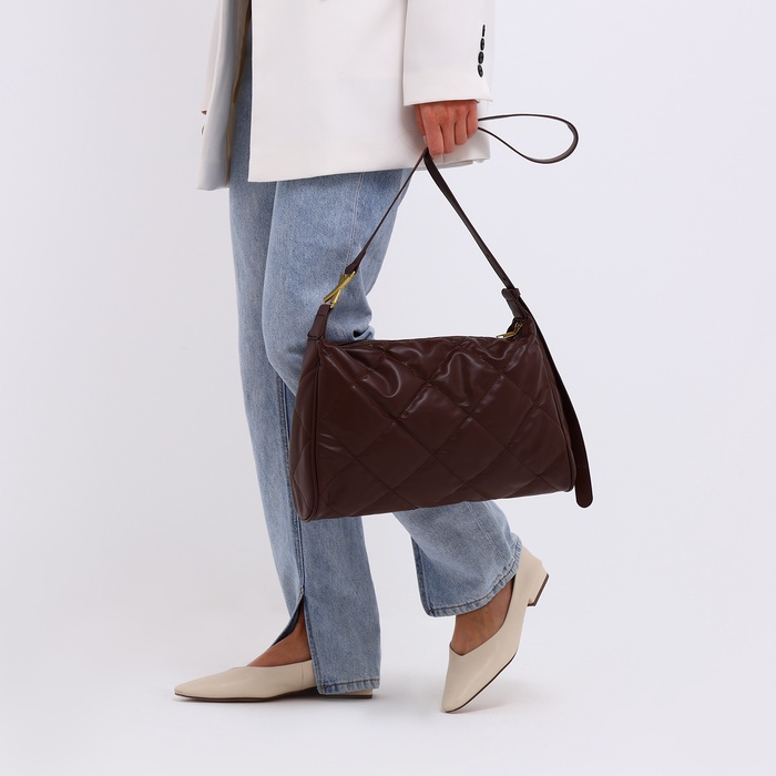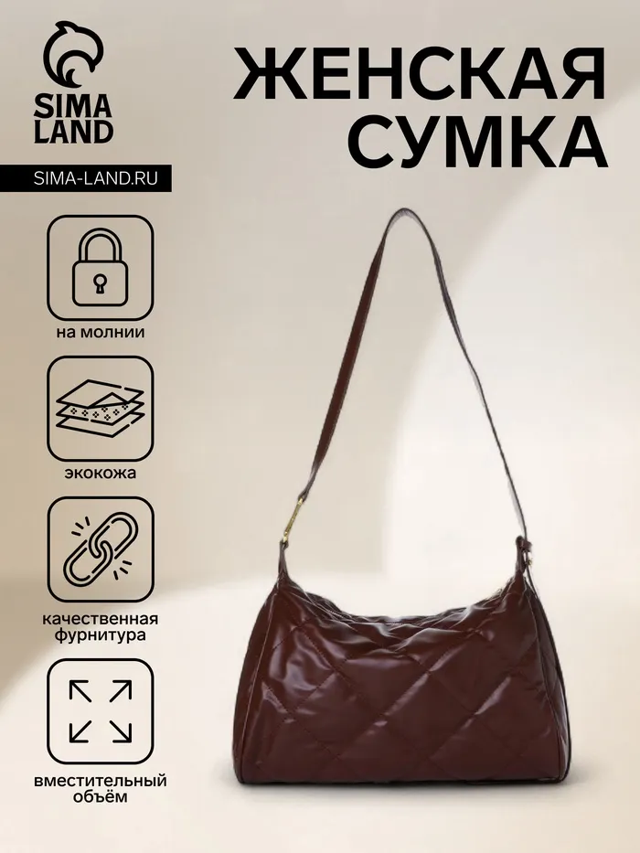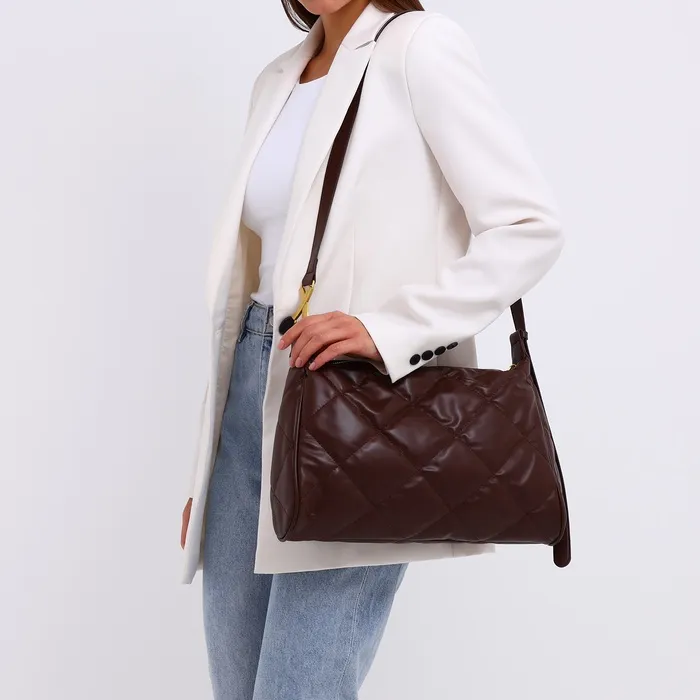 Сумка - мешок женская на молнии, 36×10×23 см, тёмно-коричневая — Характеристики