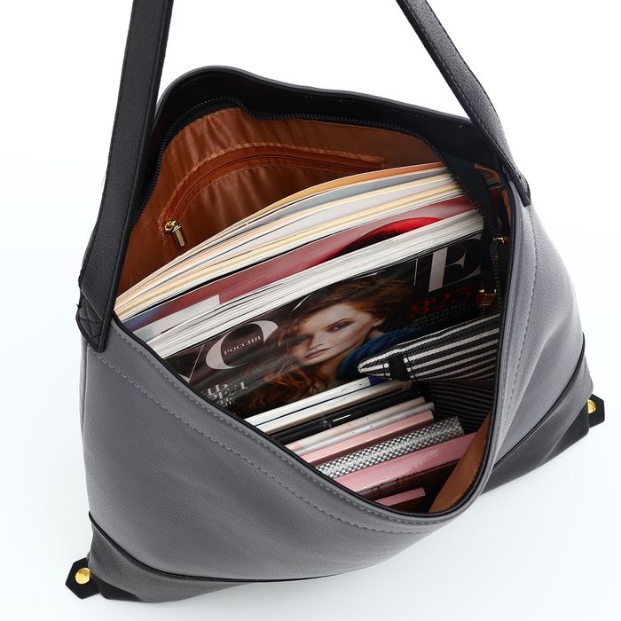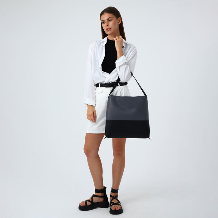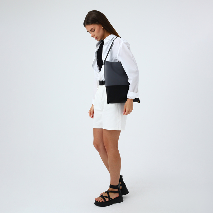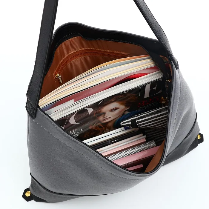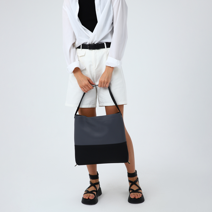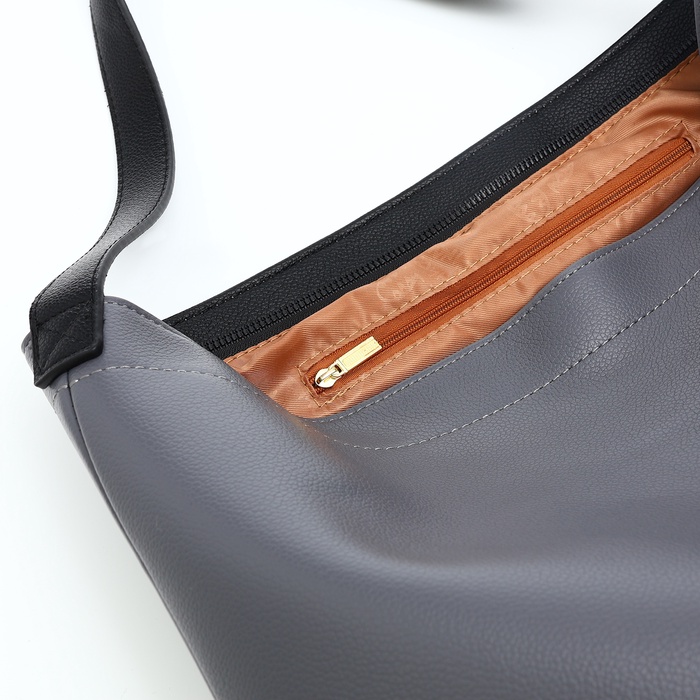 Сумка - мешок женская на молнии, 40×3×36 см, серая/чёрная — Характеристики
