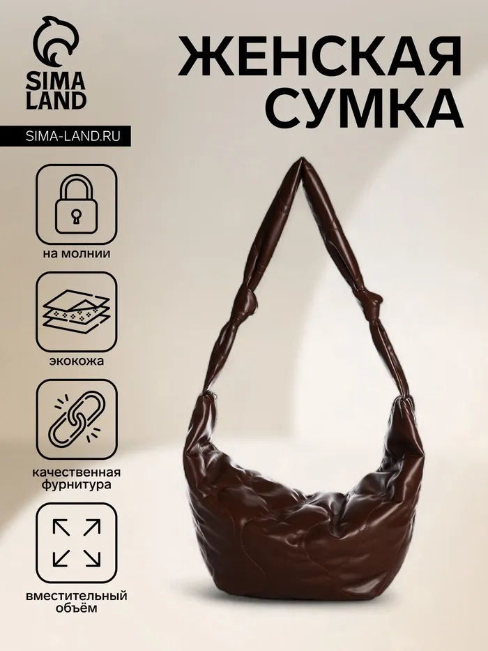 Сумка - мешок женская на молнии, 58×10×31 см, коричневая — Характеристики