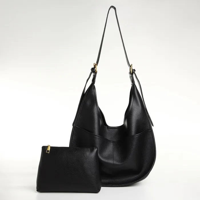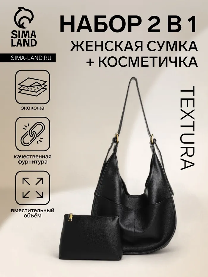 Сумка - мешок женская TEXTURA, на магните, с косметичкой, 34×12×27 см, чёрная — Характеристики
