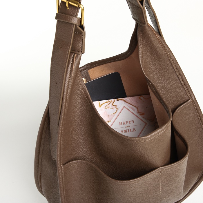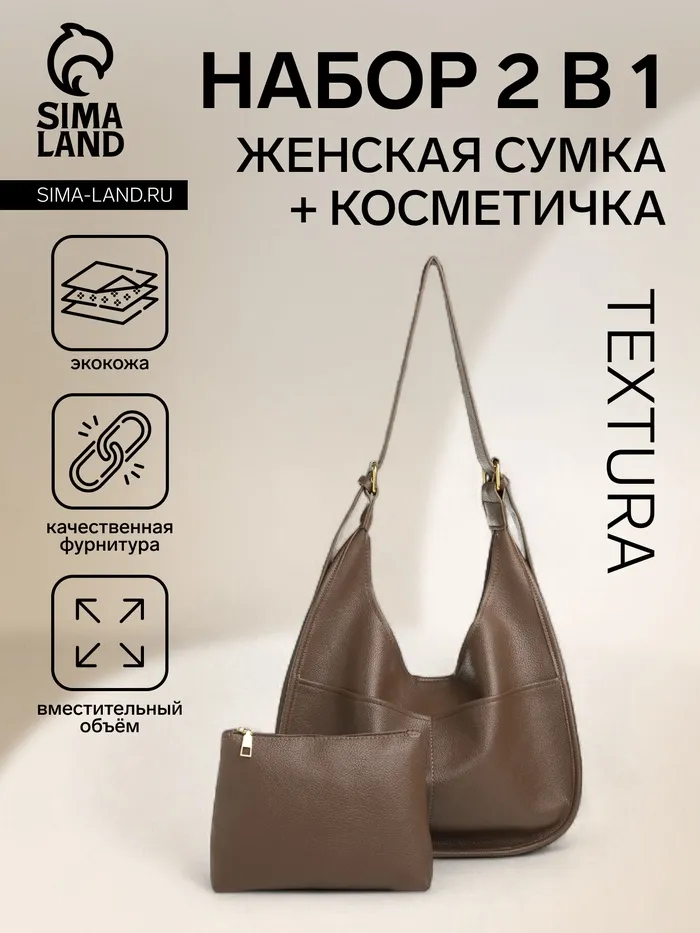 Сумка - мешок женская TEXTURA, на магните, с косметичкой, 34×12×27 см, коричневая — Характеристики