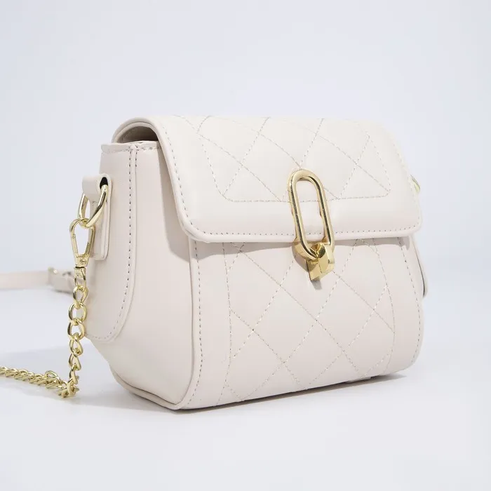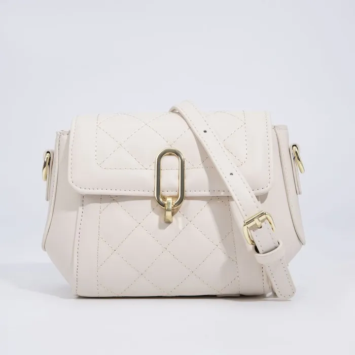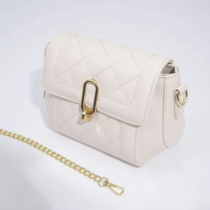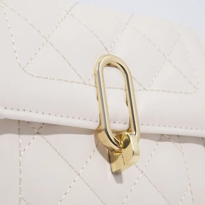 Эта элегантная сумка через плечо сочетает в себе лаконичный дизайн и практичную функциональность. Её классический белый цвет с золотистой фурнитурой создаёт ощущение стиля и лёгкости, идеально дополняя как повседневный, так и более формальный образ. Жёсткий каркас сохраняет форму, обеспечивая аккуратный внешний вид даже когда сумка не заполнена полностью.