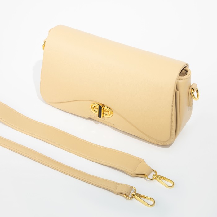 Сумка-мессенджер на застёжке, длинный ремень, цвет тёмно-бежевый — Характеристики