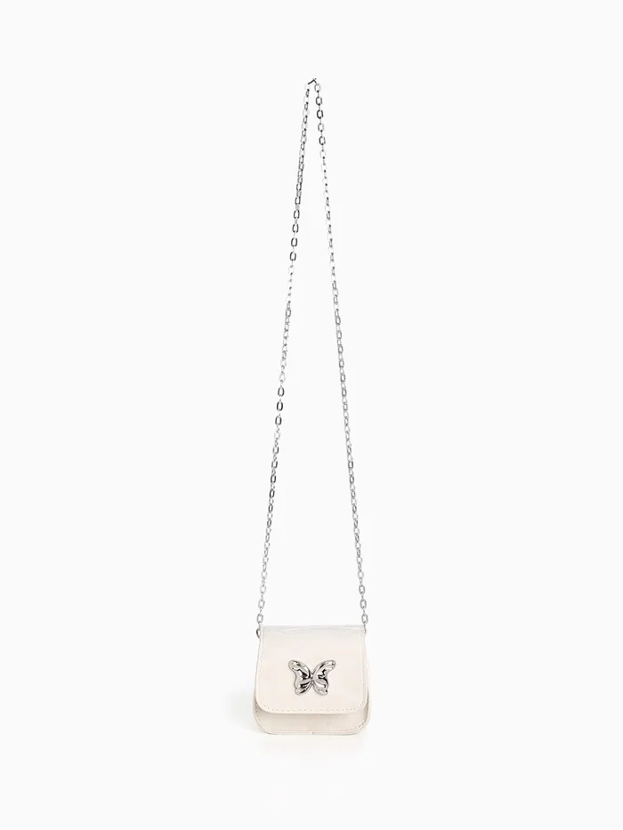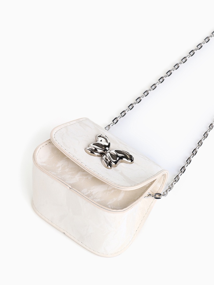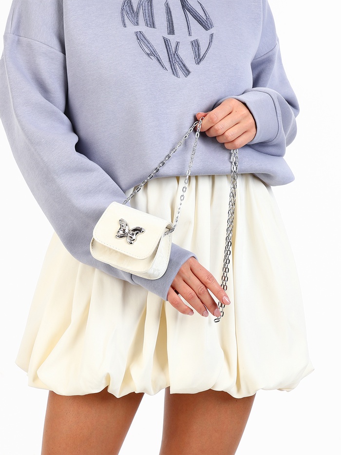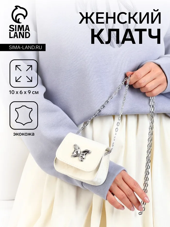 Сумка мини-клатч на магните, на длинной цепочке, белая — Характеристики