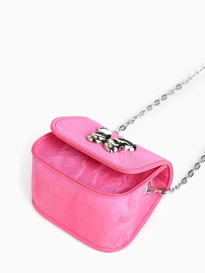 Сумка мини-клатч на магните, на длинной цепочке, розовая — Характеристики