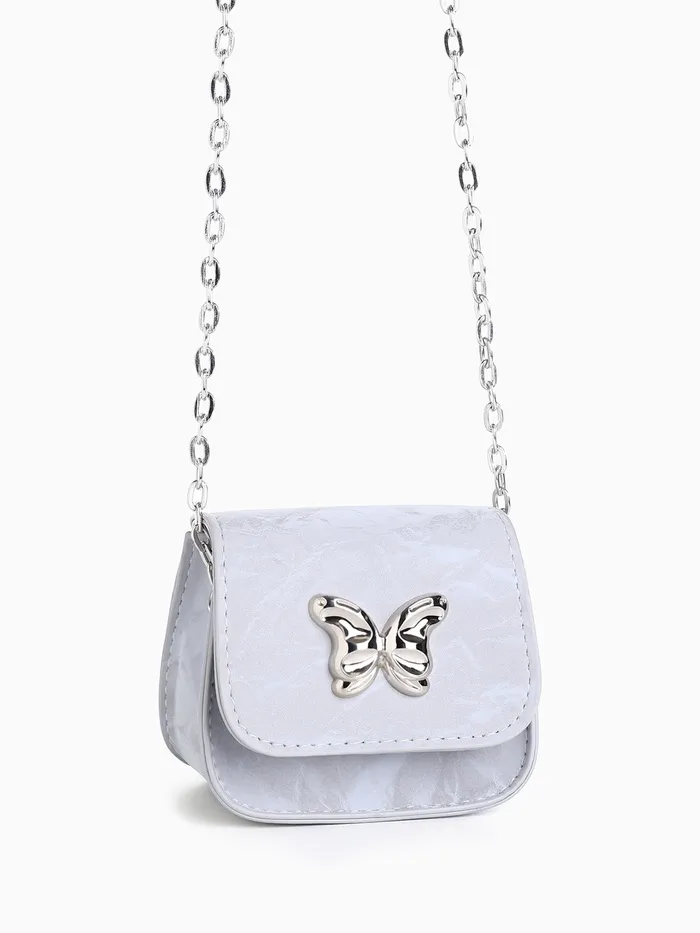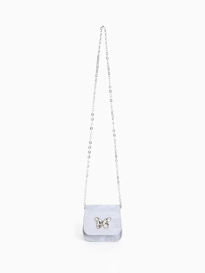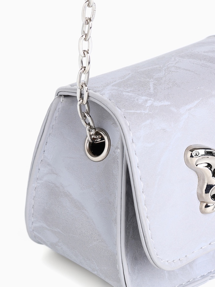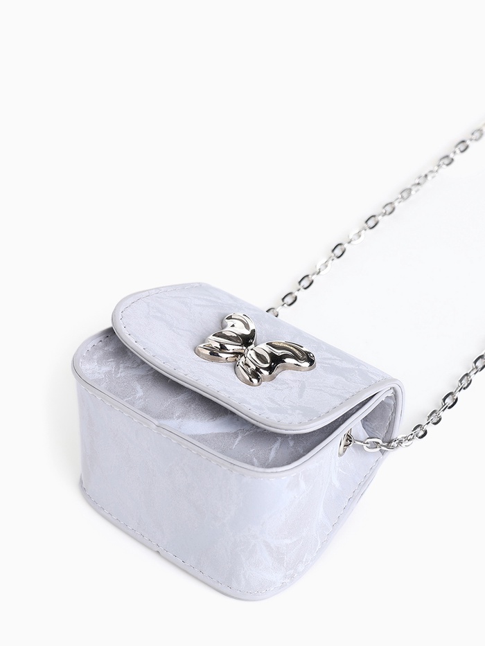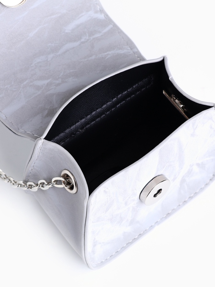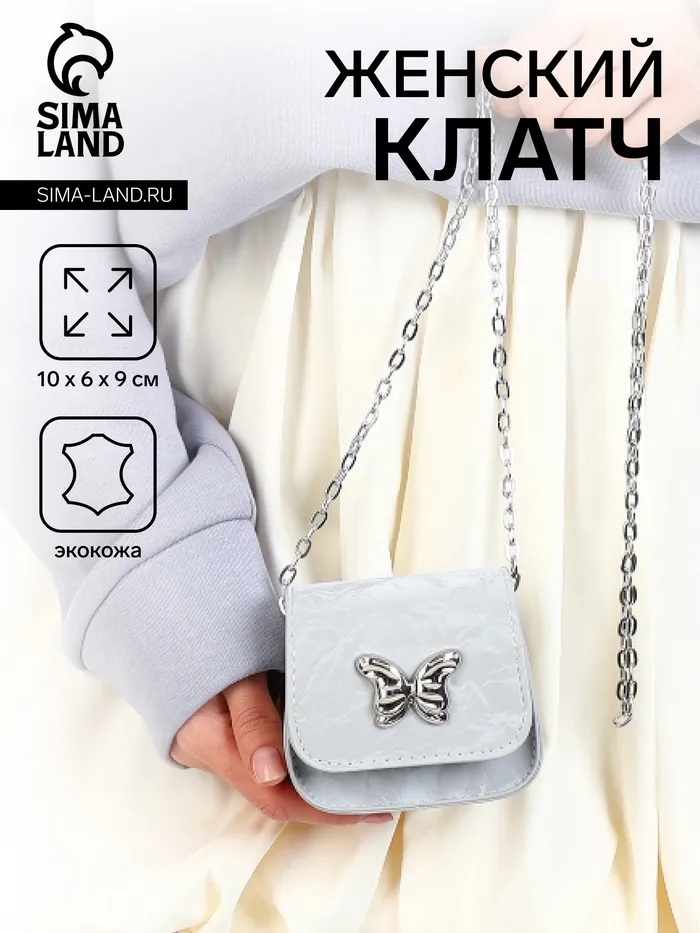 Сумка мини-клатч на магните, на длинной цепочке, серебристая — Характеристики