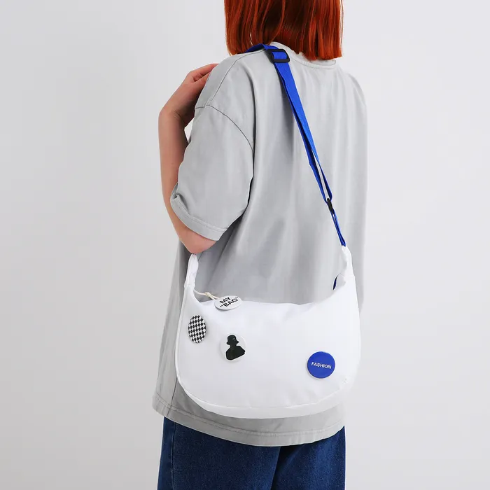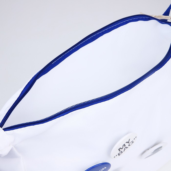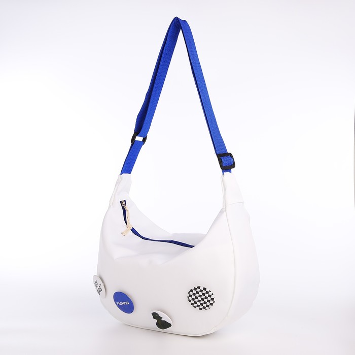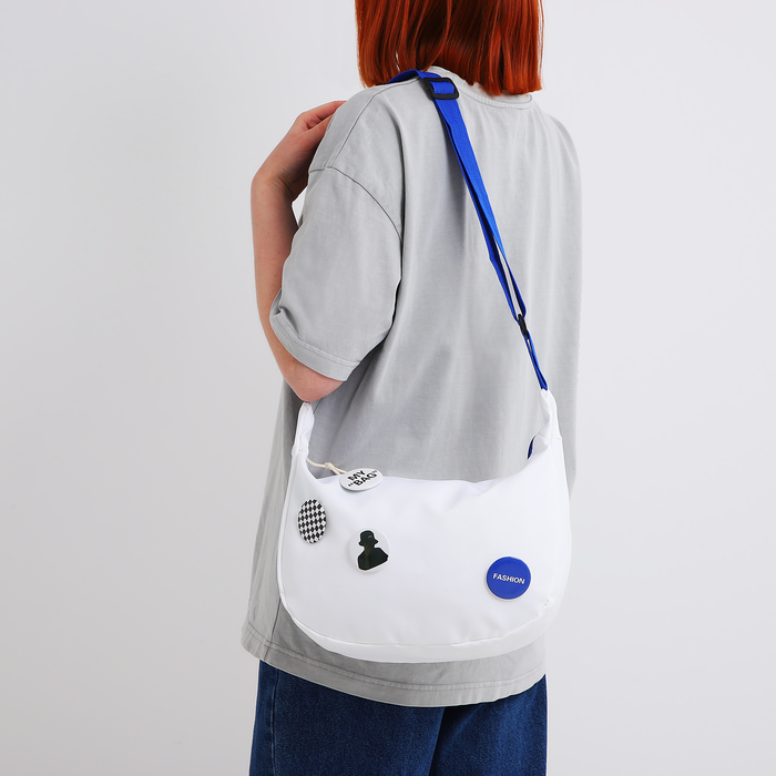 Сумка молодёжная 32×11×22 см, на молнии, с декоративными значками, белая — Характеристики