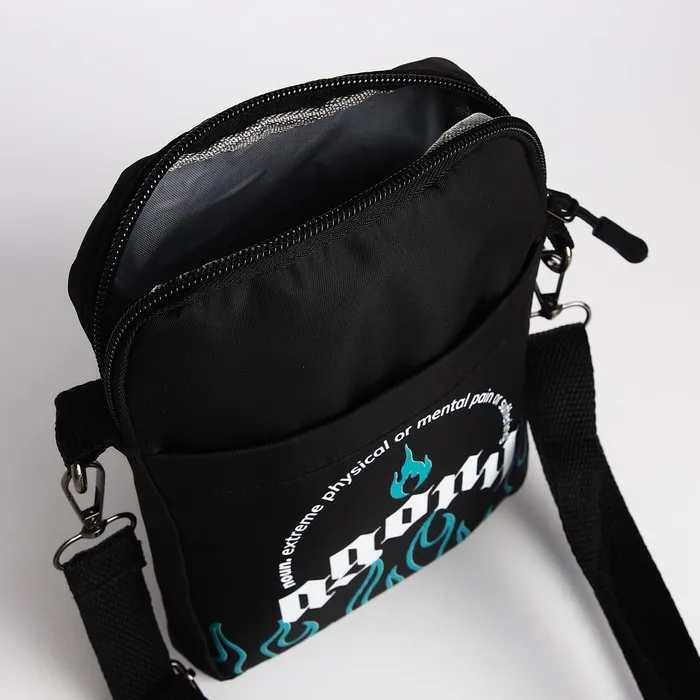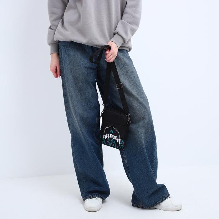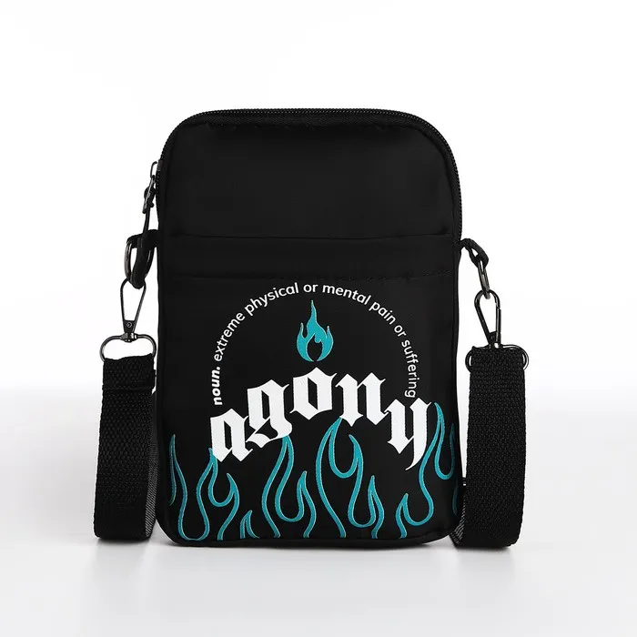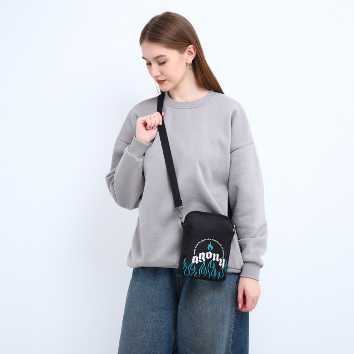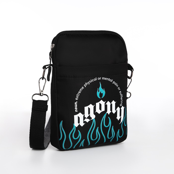 Сумка молодёжная на длинном ремне Agony, 20×15×3 см, отдел на молнии, чёрная — Характеристики
