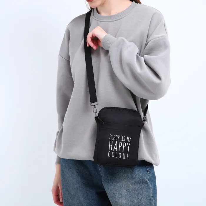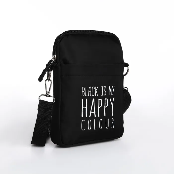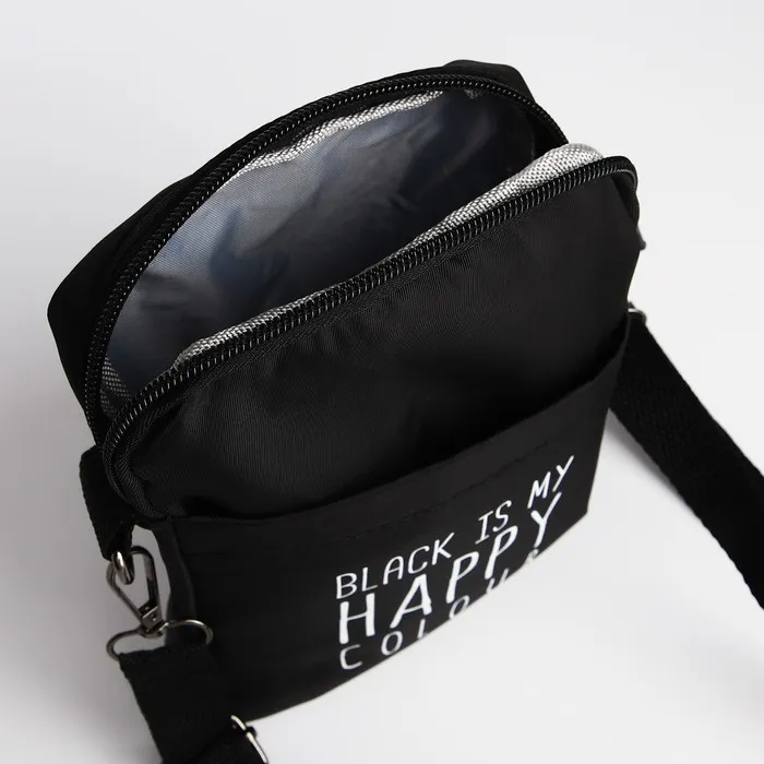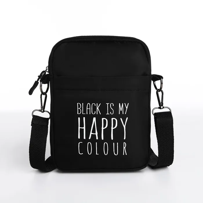 Сумка молодёжная на длинном ремне Black is my happy color, 20×15×3 см, отдел на молнии, чёрная — Характеристики