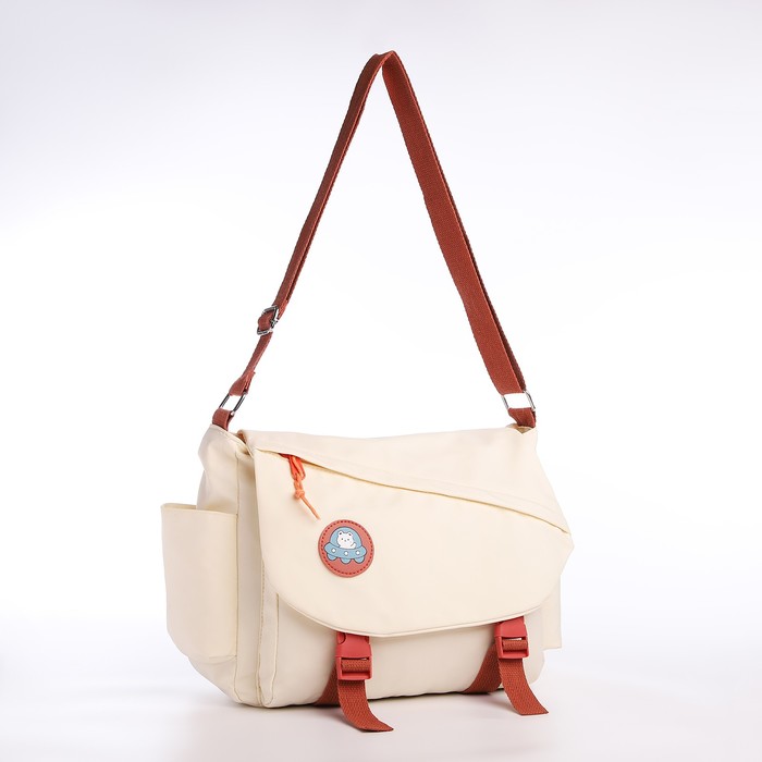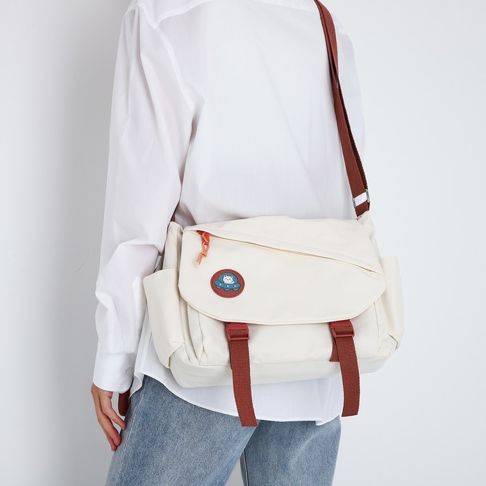 Сумка молодёжная на клапане, цвет молочный/коричневый — Характеристики