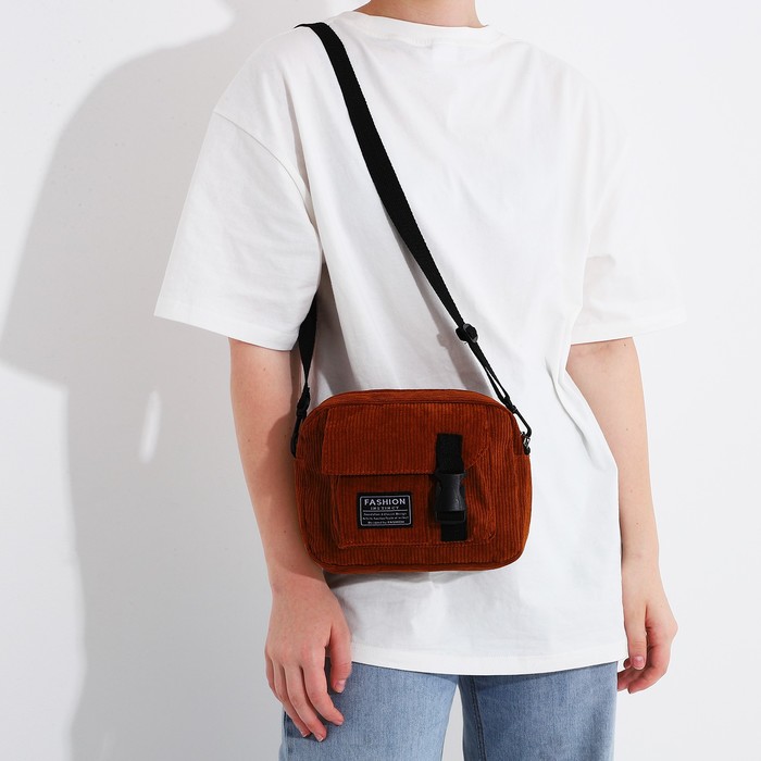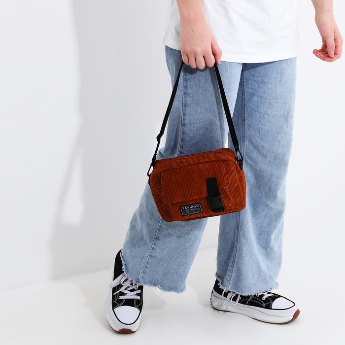 Сумка молодёжная на молнии, 1 наружный карман, цвет коричневый — Характеристики