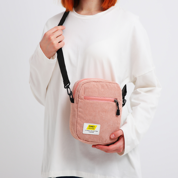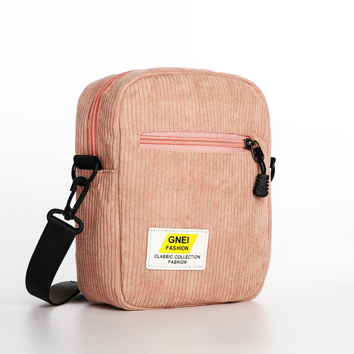 Сумка молодёжная на молнии, с наружным карманом, 17×6×14 см, розовая