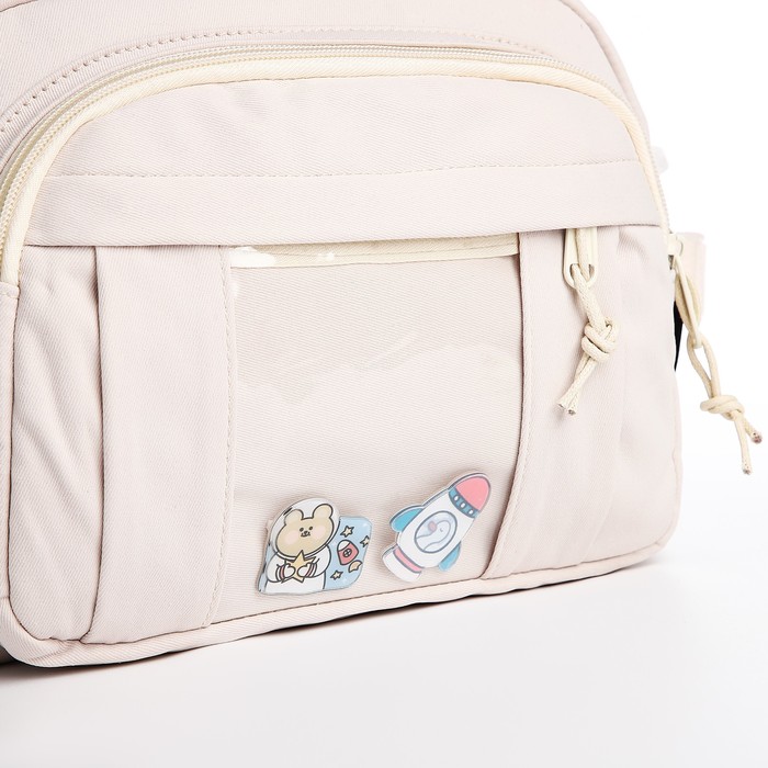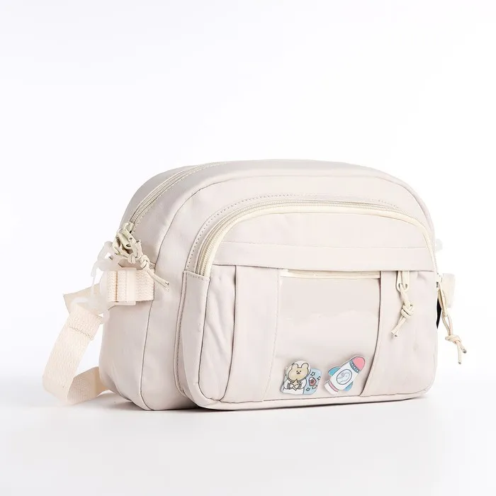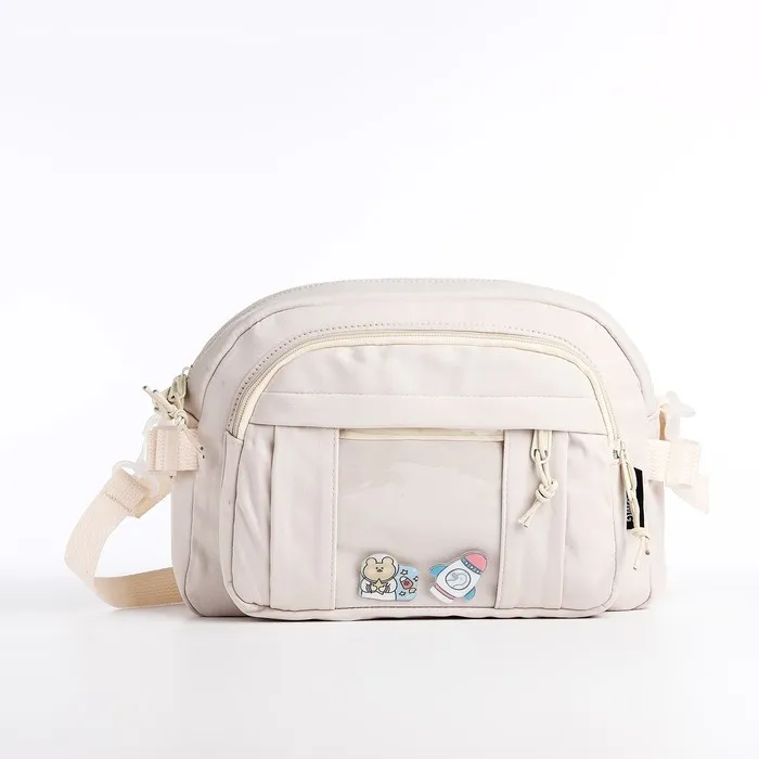 Сумка молодёжная на молнии, со значками, 23×5.5×16 см, белая — Характеристики