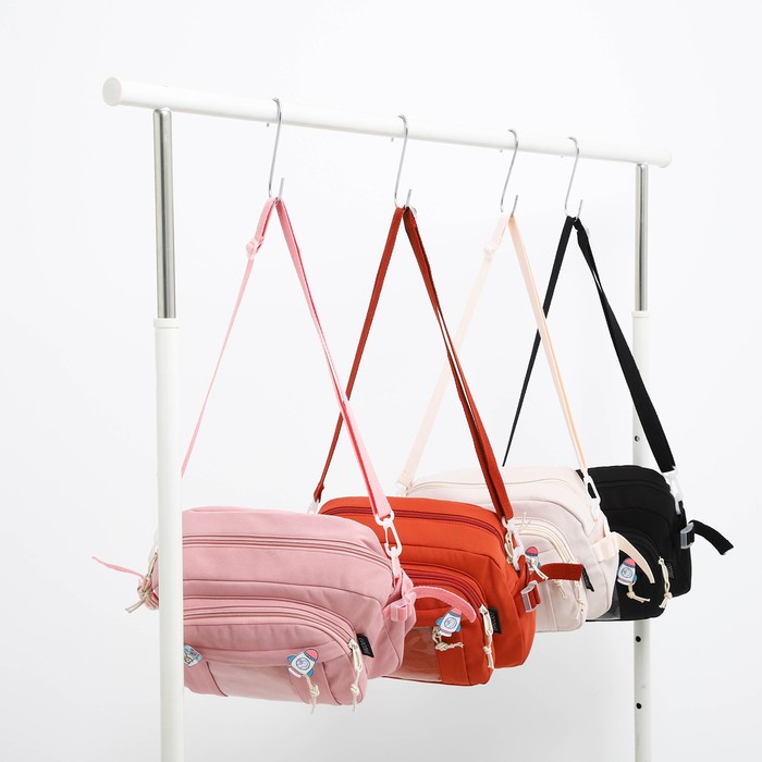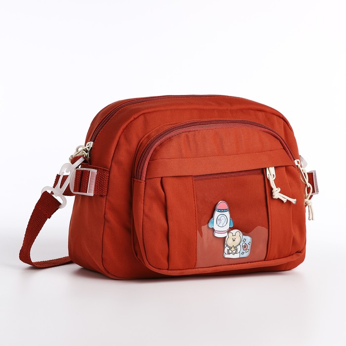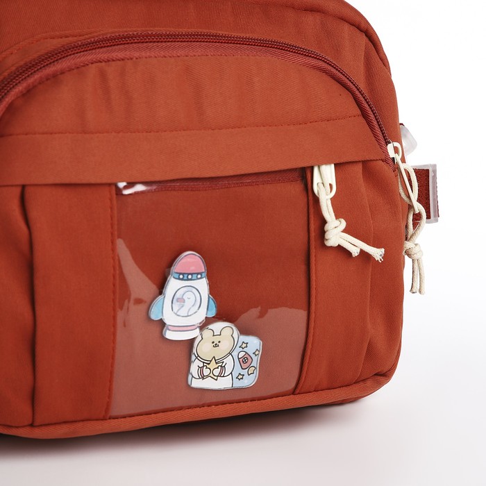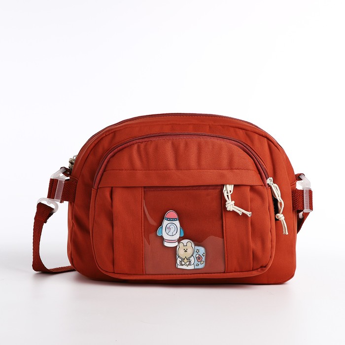 Сумка молодёжная на молнии, со значками, 23×5.5×16 см, рыжая — Характеристики