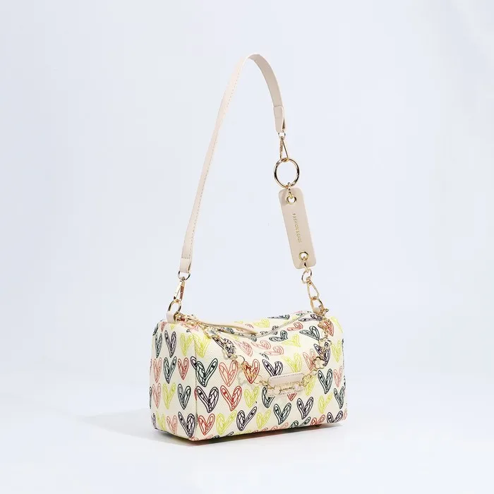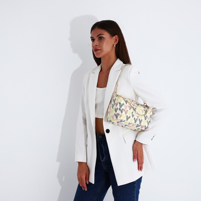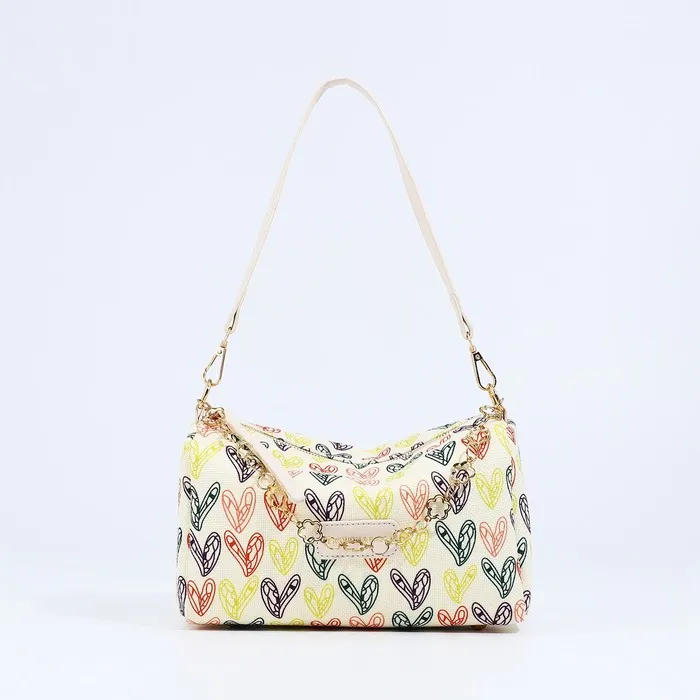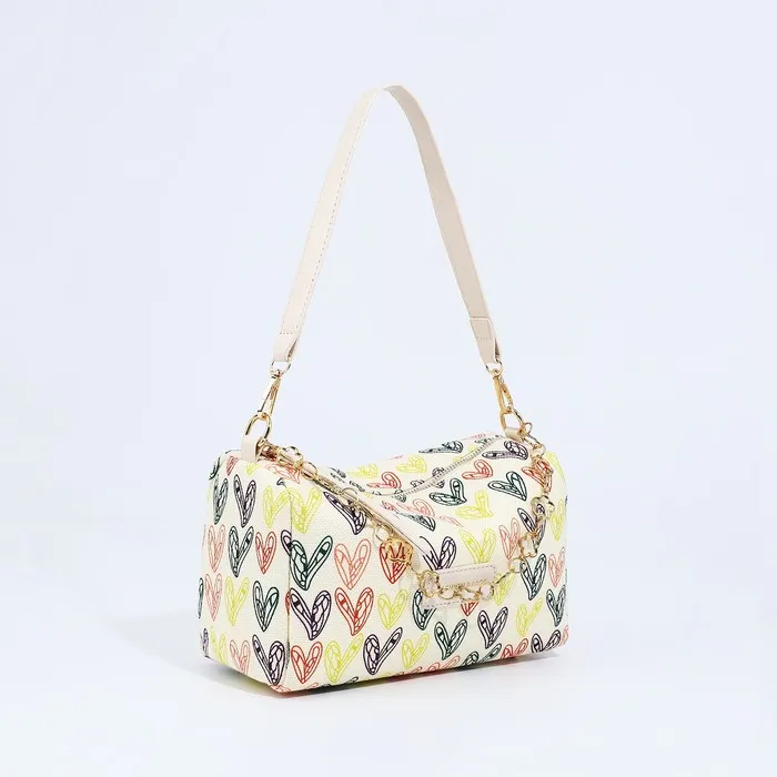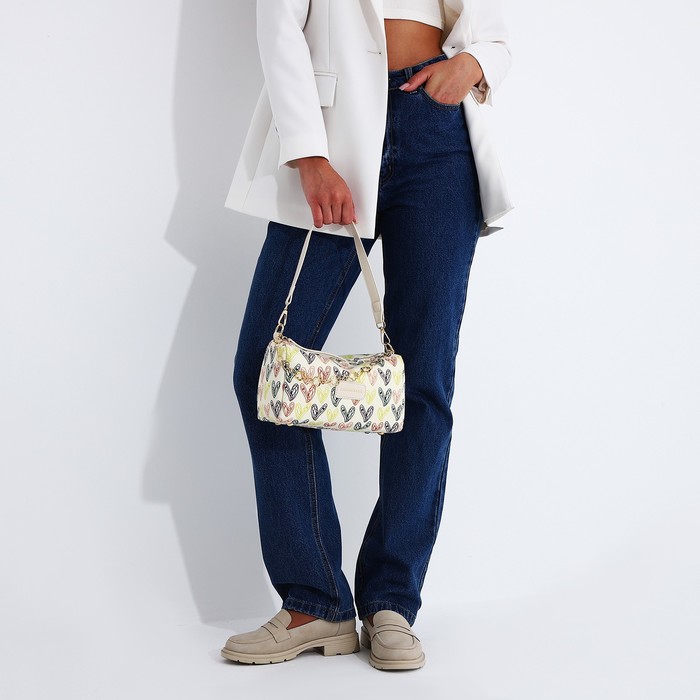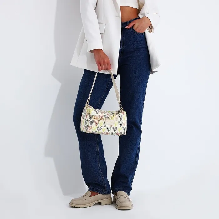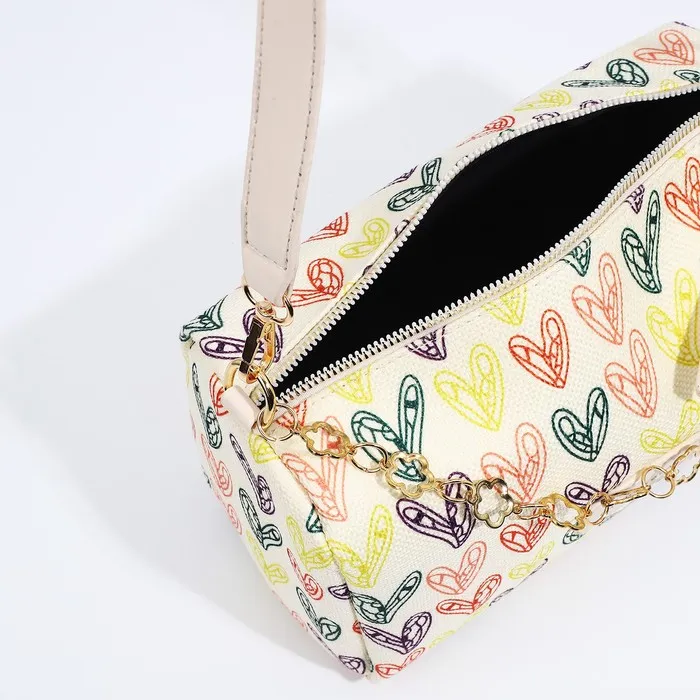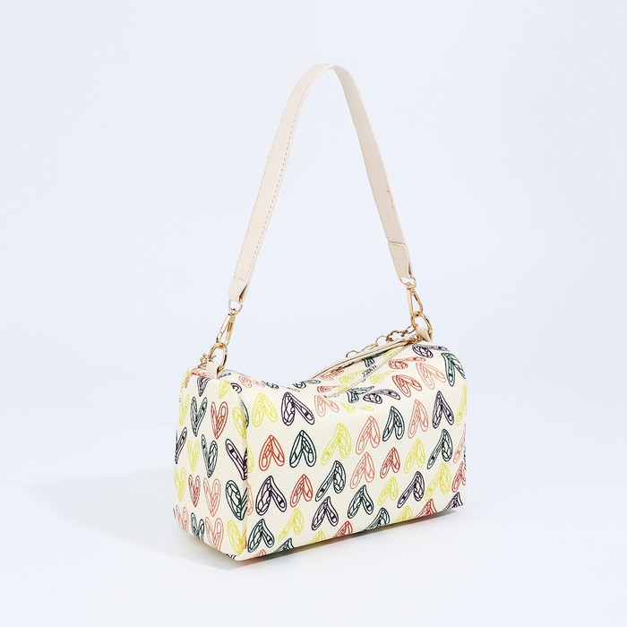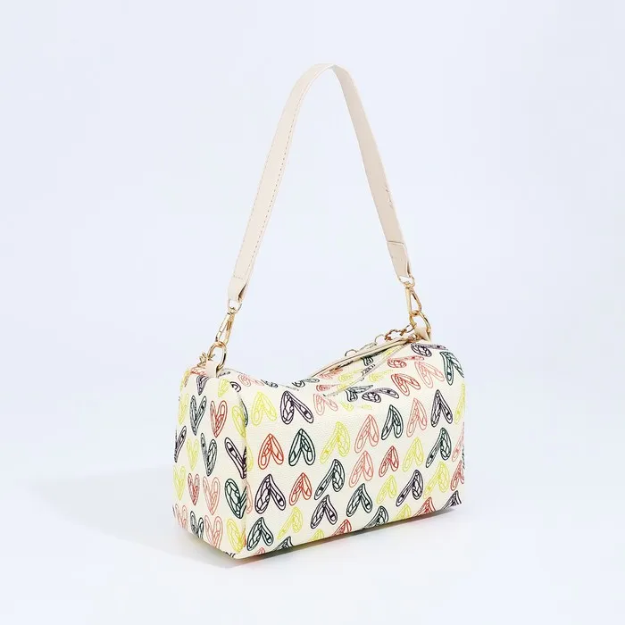 Сумка молодёжная на молнии, цвет бежевый/разноцветный — Характеристики