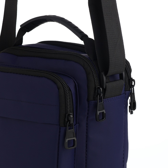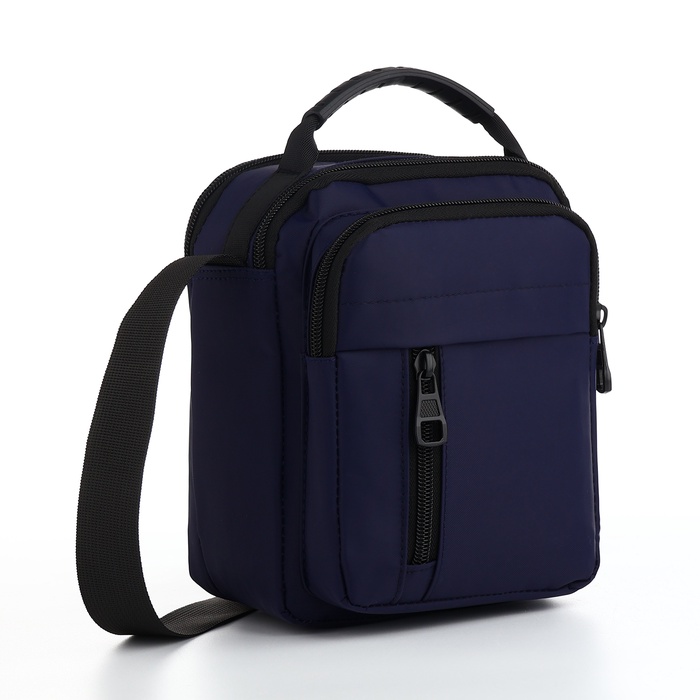 Сумка мужская, 2 отдела на молниях, 3 наружных кармана, синяя