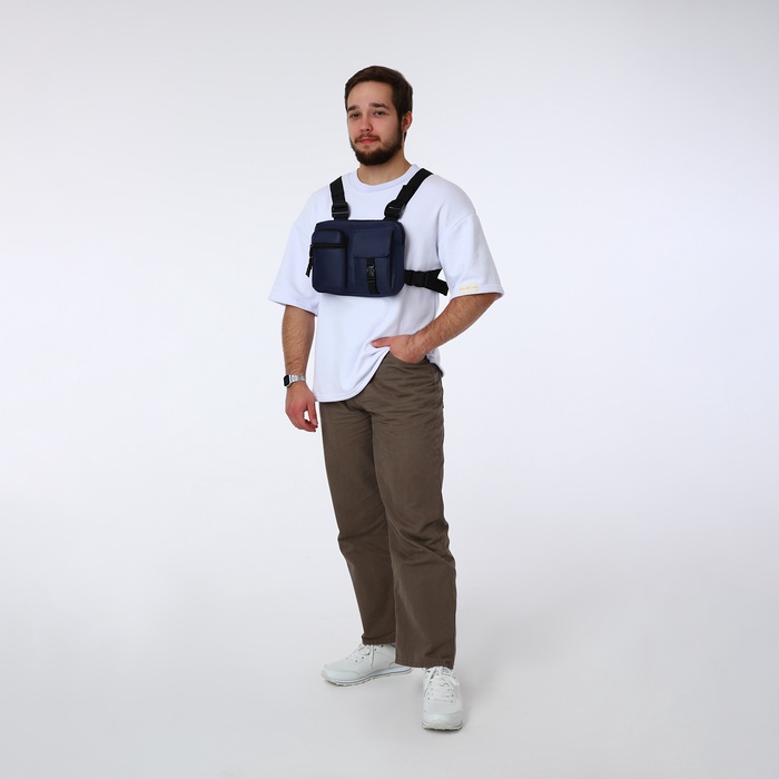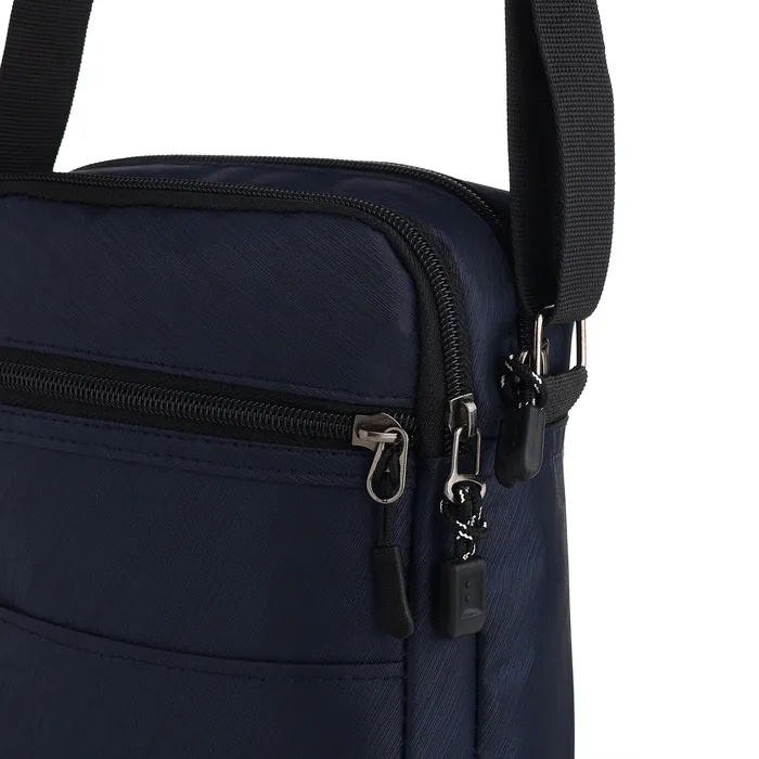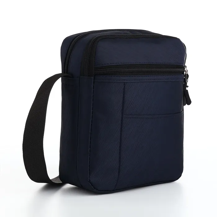 Сумка мужская через плечо, 2 отдела на молниях, наружный карман, 20×8×23 см, синяя — Характеристики
