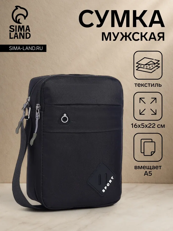 Сумка мужская через плечо, 2 отдела на молниях, наружный карман, чёрная — Характеристики