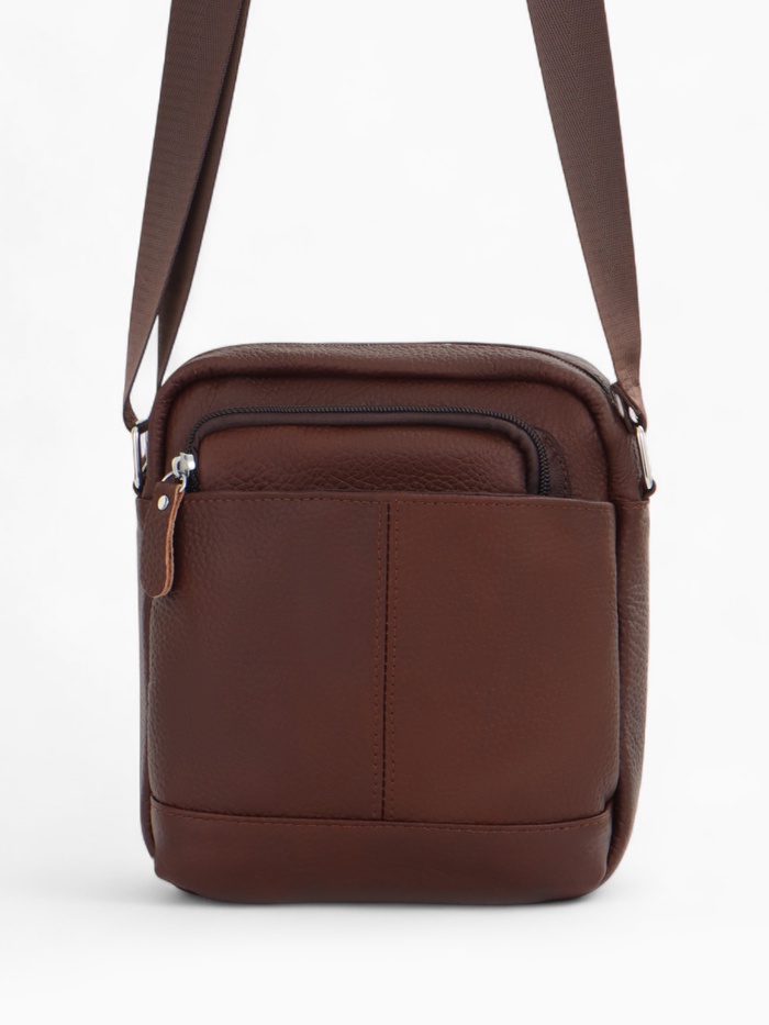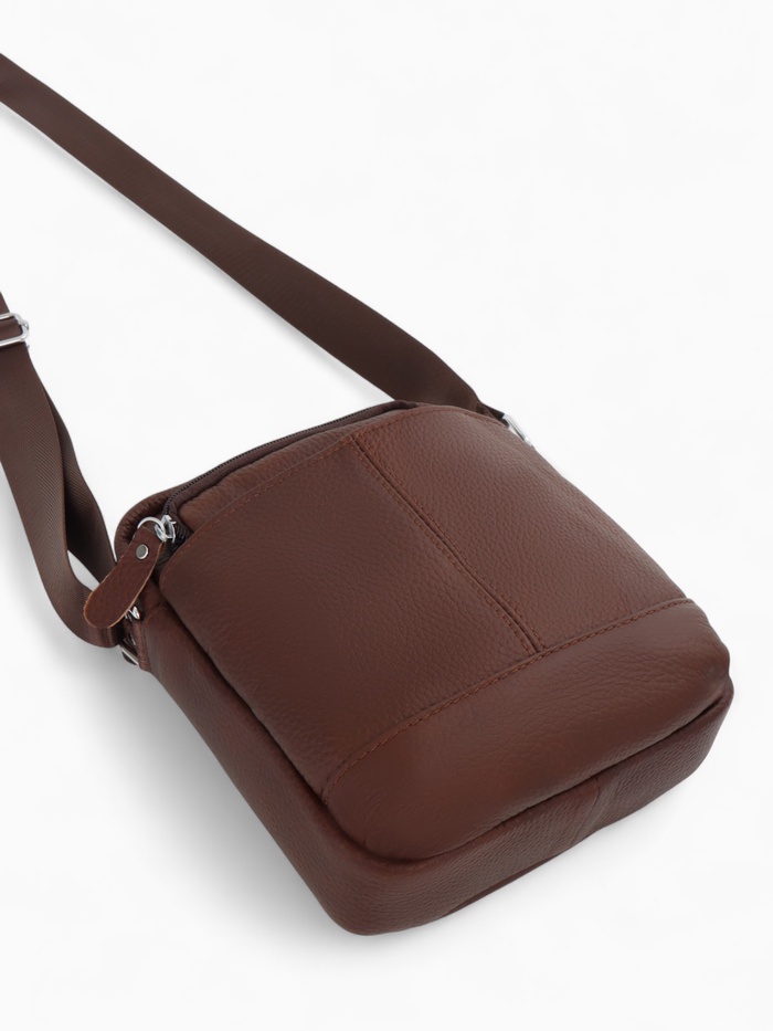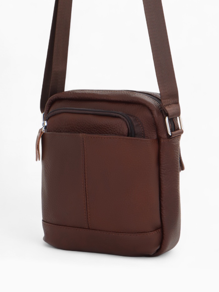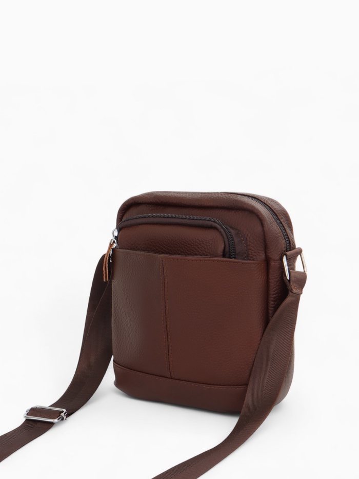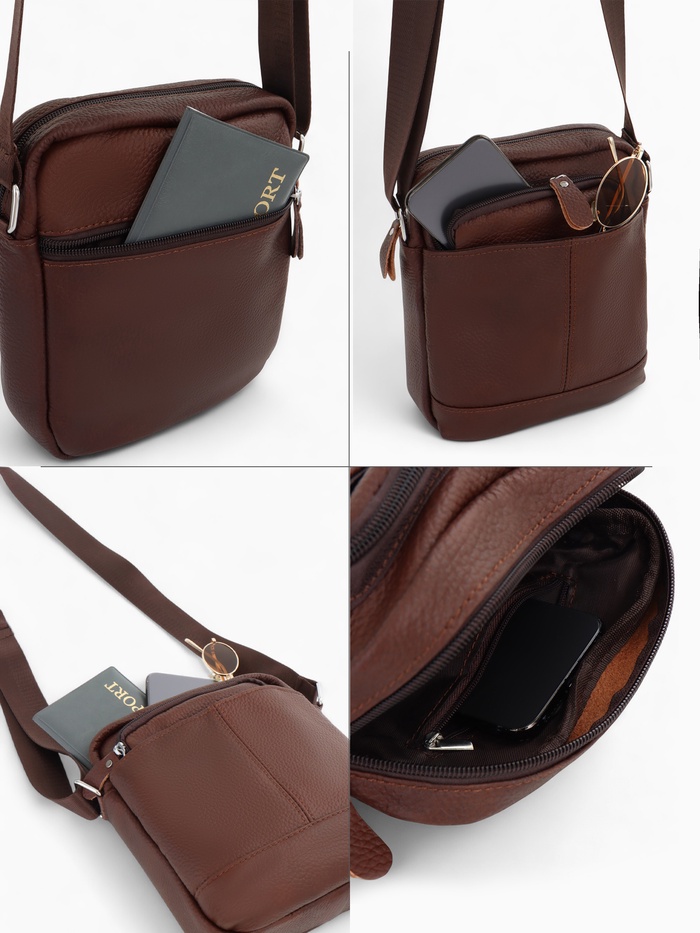 Эта мужская кожаная сумка через плечо — воплощение сдержанности и функциональности. Её компактный формат идеально подходит для городской жизни, где важны лёгкость и практичность.