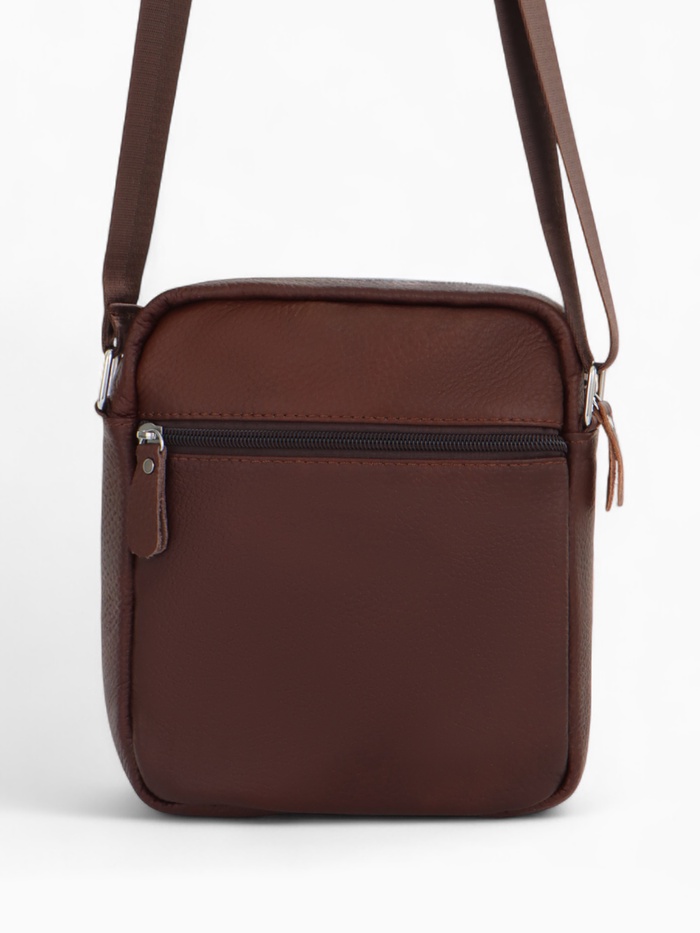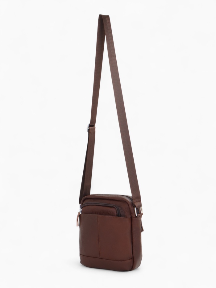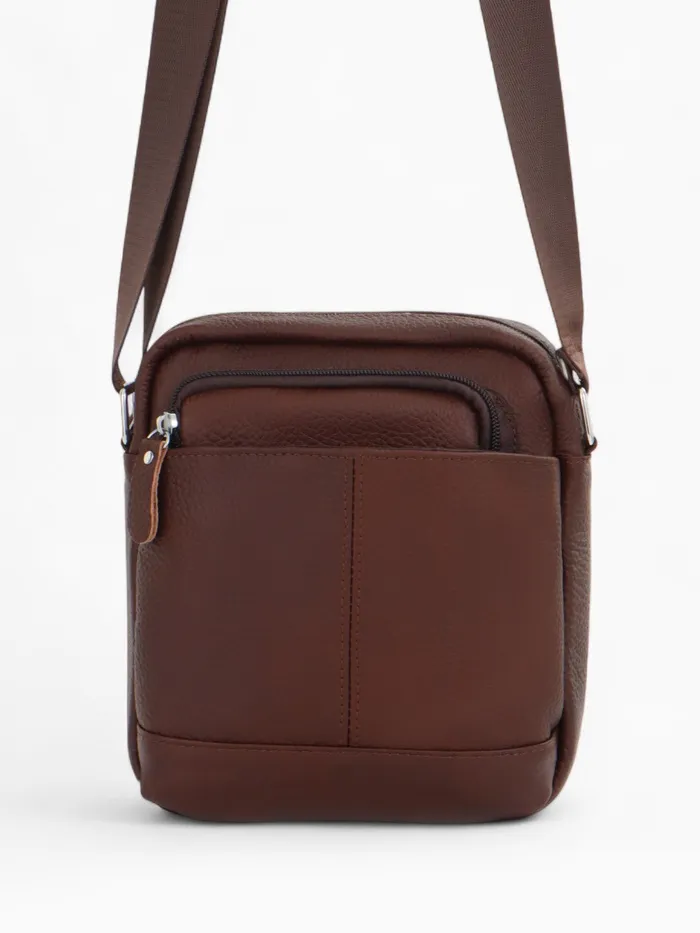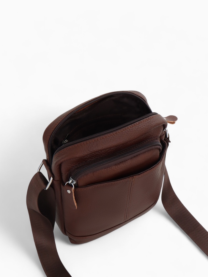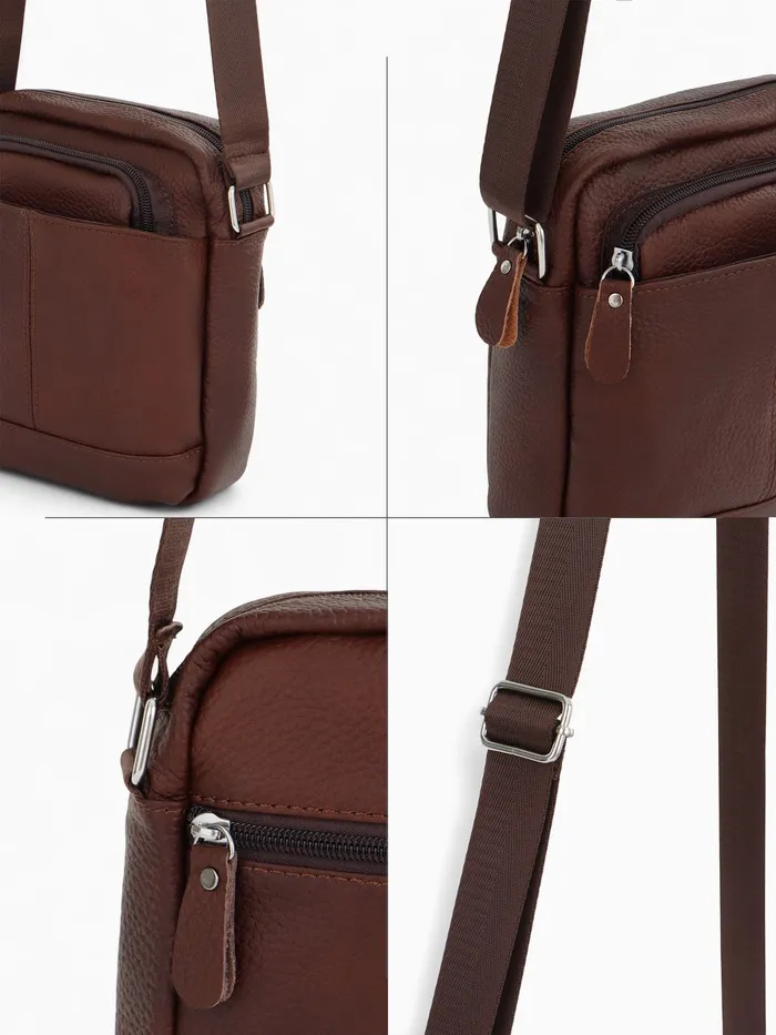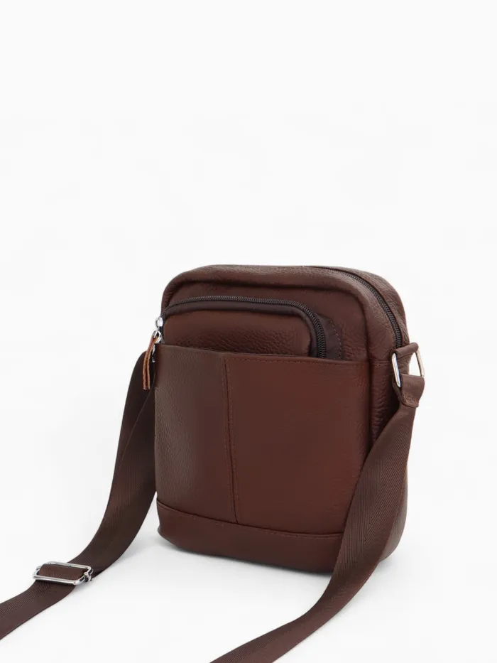 Эта мужская кожаная сумка через плечо — воплощение сдержанности и функциональности. Её компактный формат идеально подходит для городской жизни, где важны лёгкость и практичность.