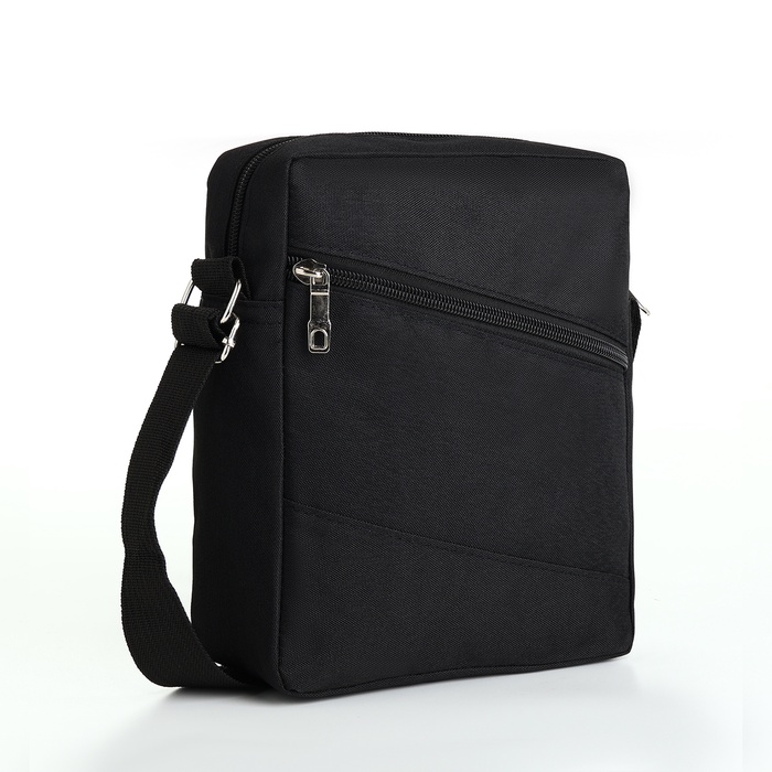 Сумка мужская через плечо на молнии, 2 наружных кармана, чёрная — Характеристики