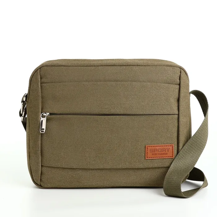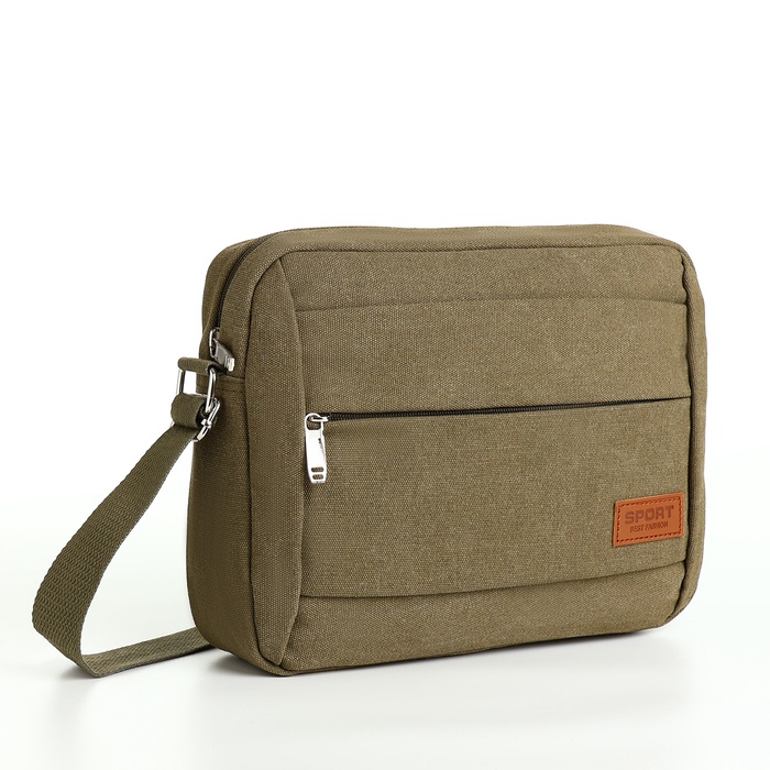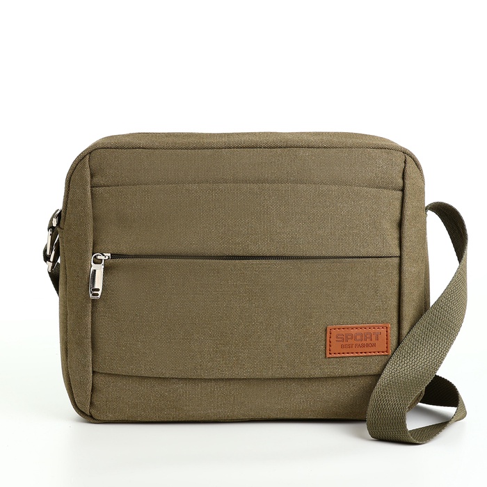 Сумка мужская через плечо на молнии, 2 наружных кармана, хаки — Характеристики