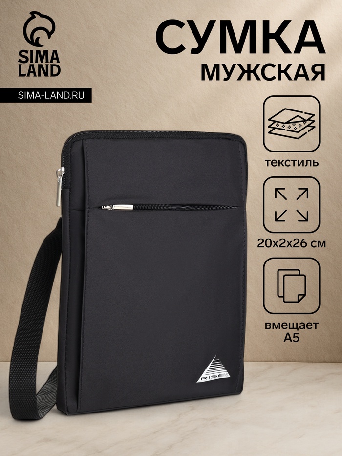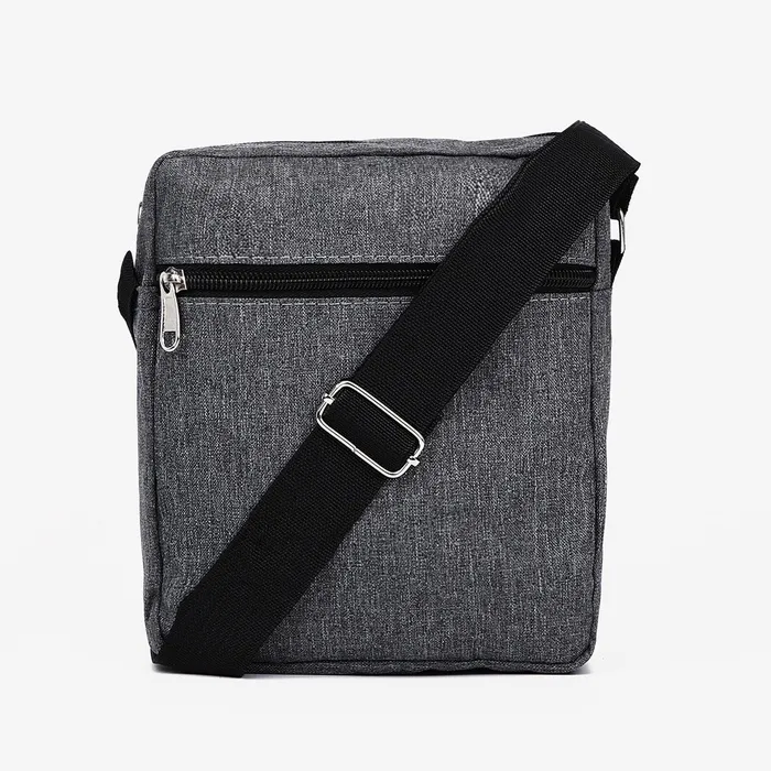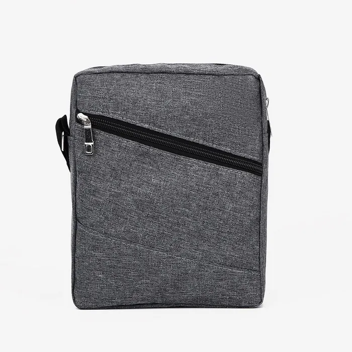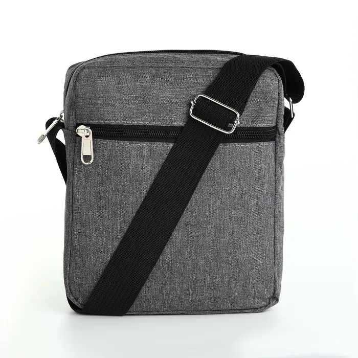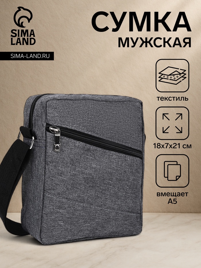 Сумка мужская через плечо на молнии, 2 наружных кармана, серая — Характеристики