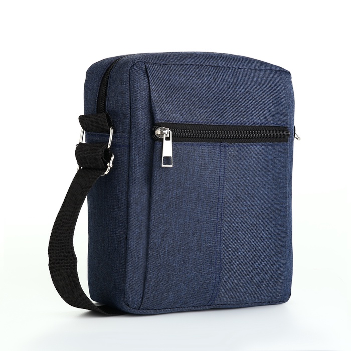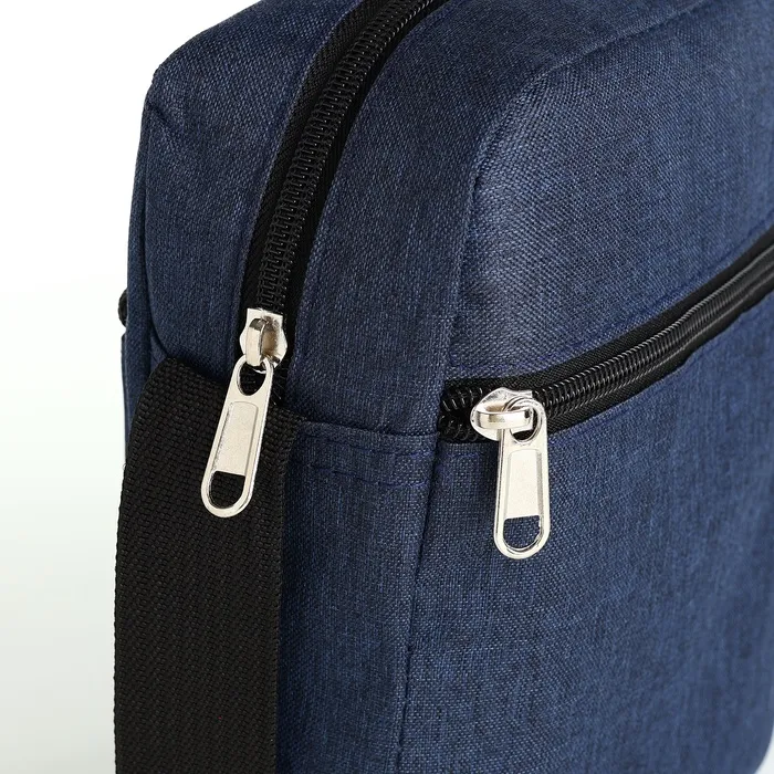 Сумка мужская через плечо на молнии, 2 наружных кармана, синяя — Характеристики