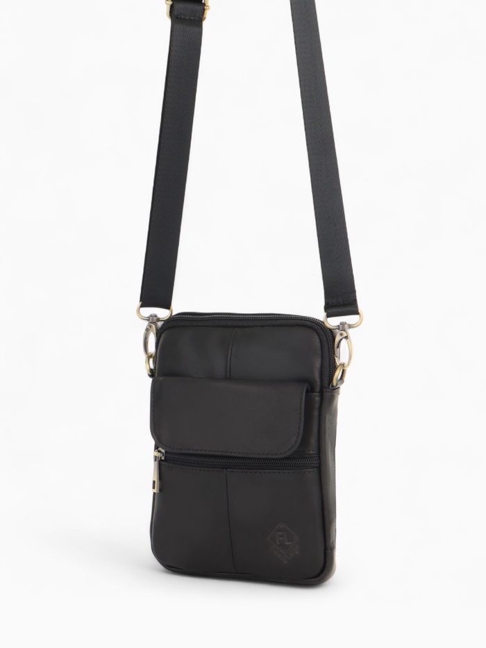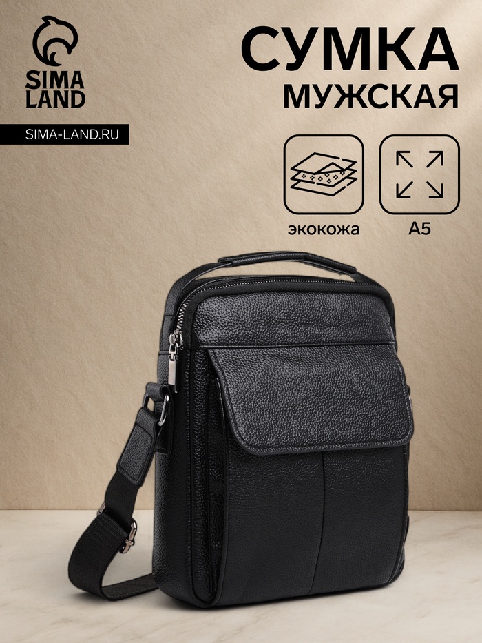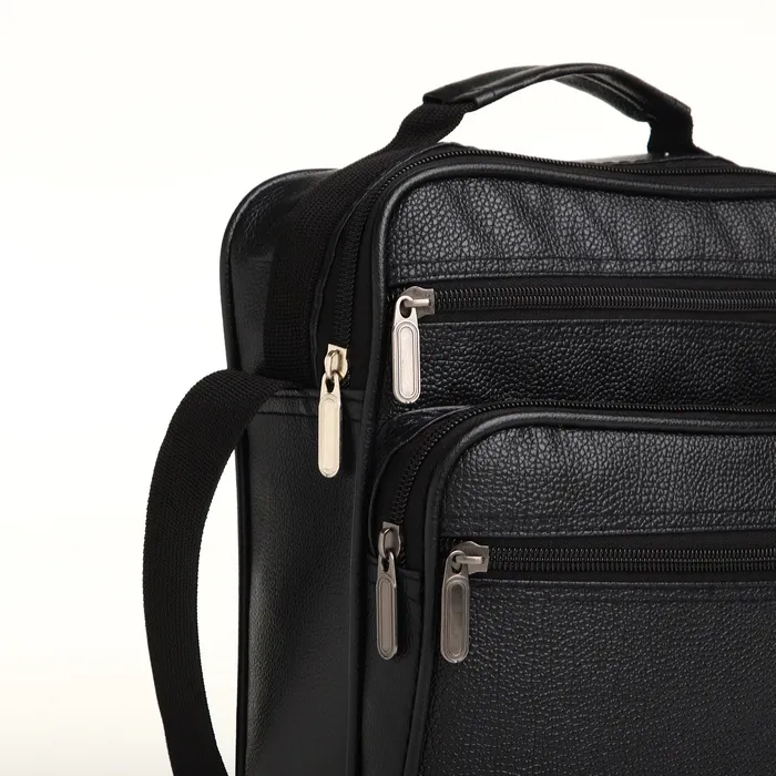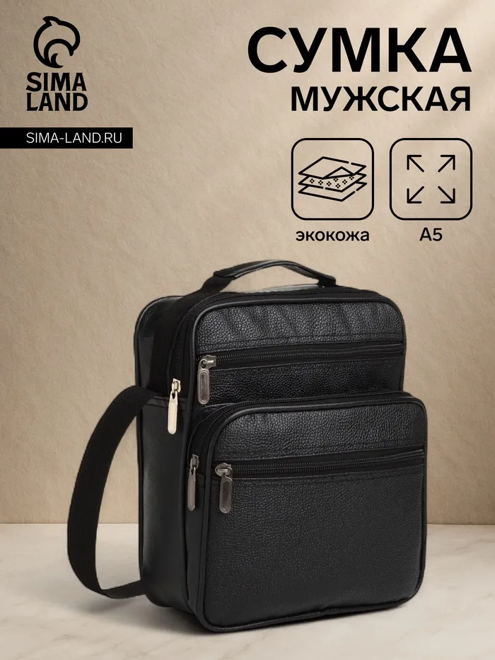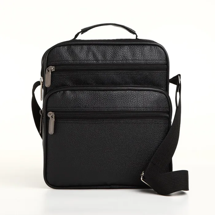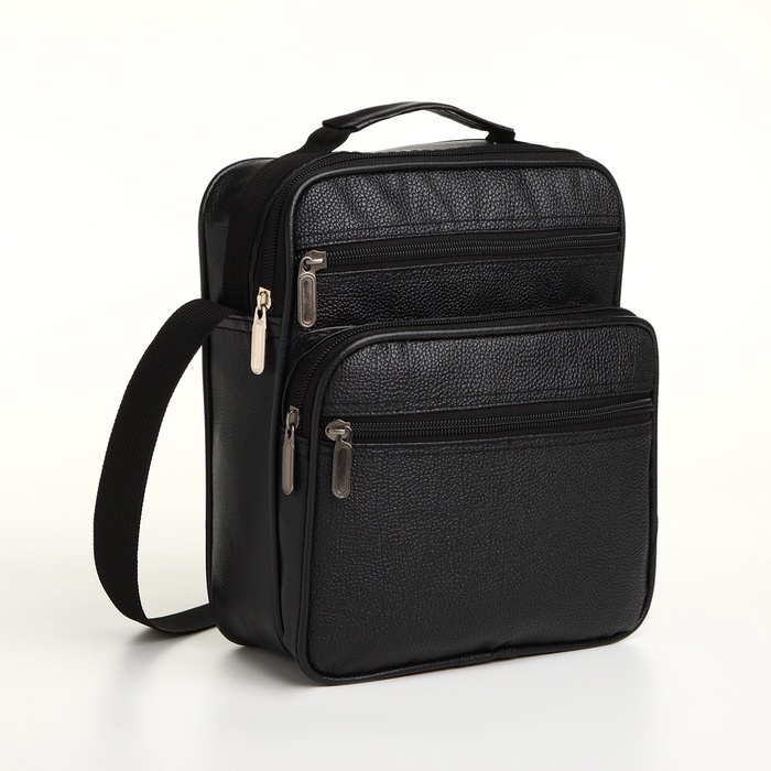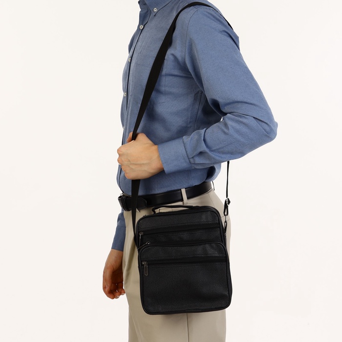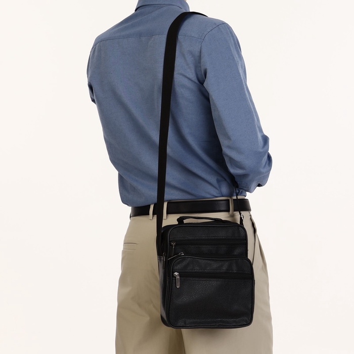 Сумка мужская через плечо на молнии, 3 наружных кармана, 24×11×20 см, чёрная — Характеристики