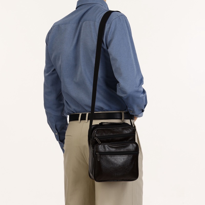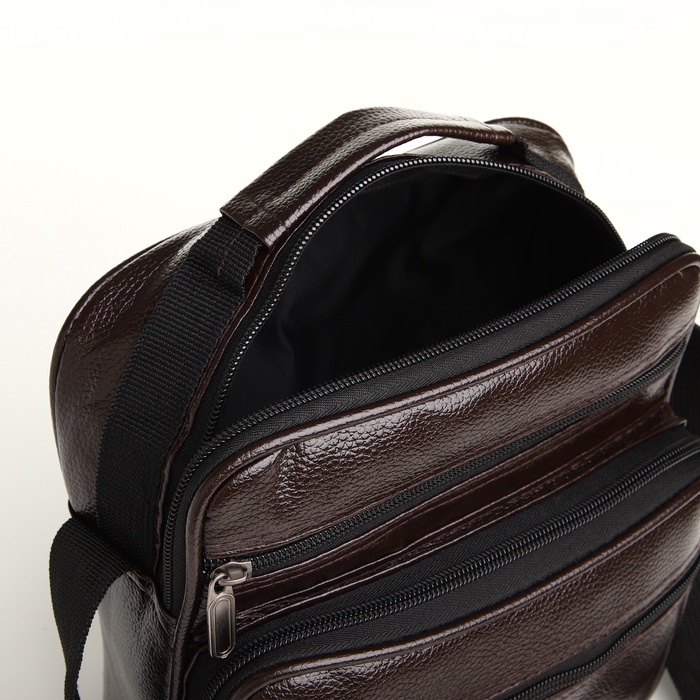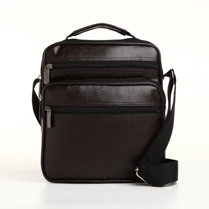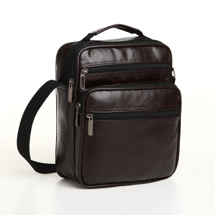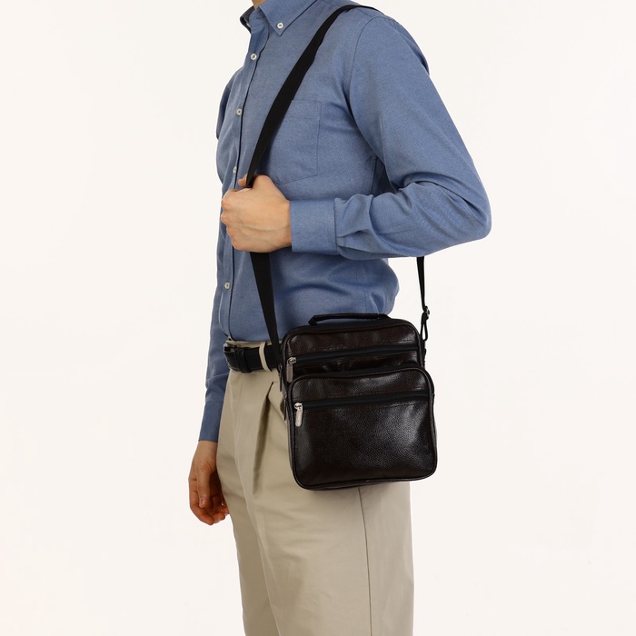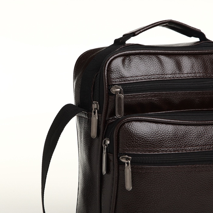 Сумка мужская через плечо на молнии, 3 наружных кармана, 24×11×20 см, коричневая — Характеристики