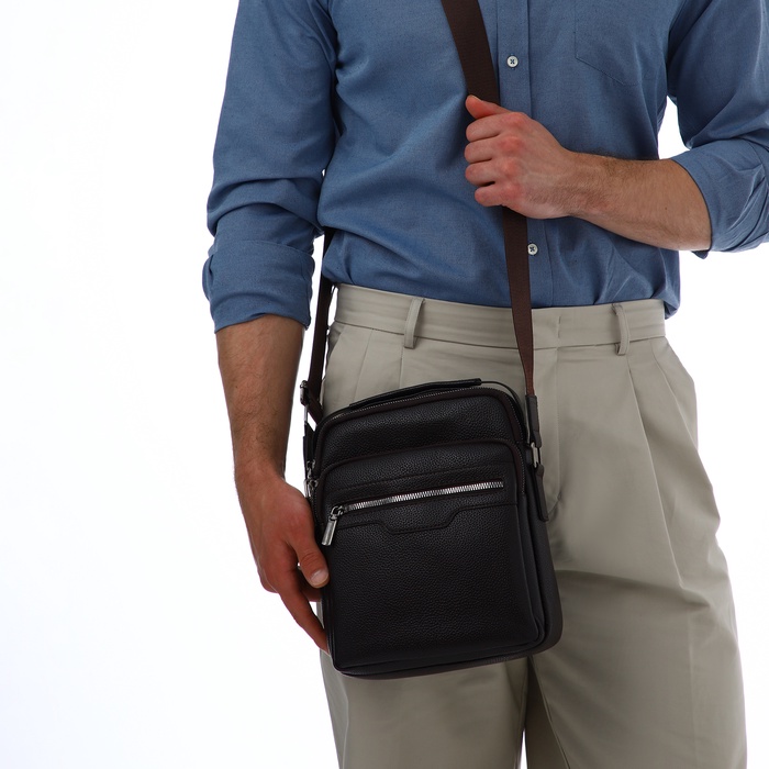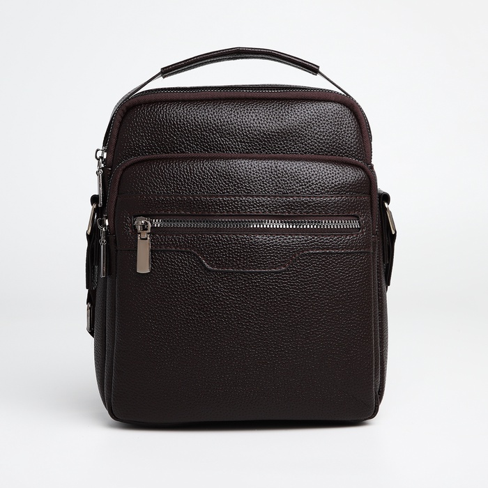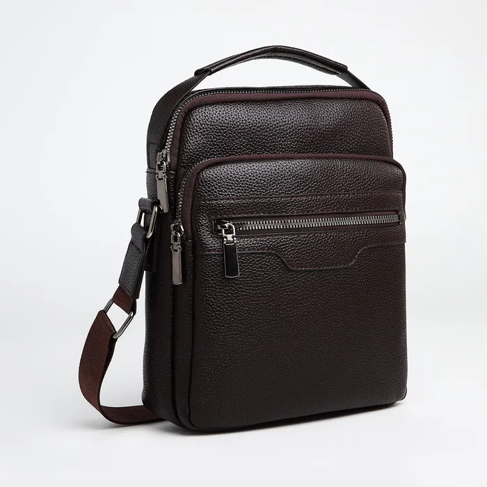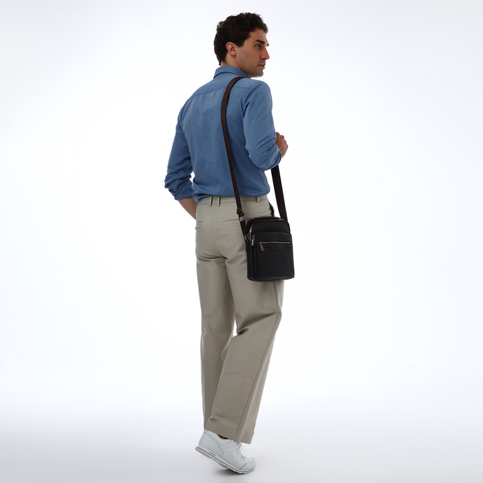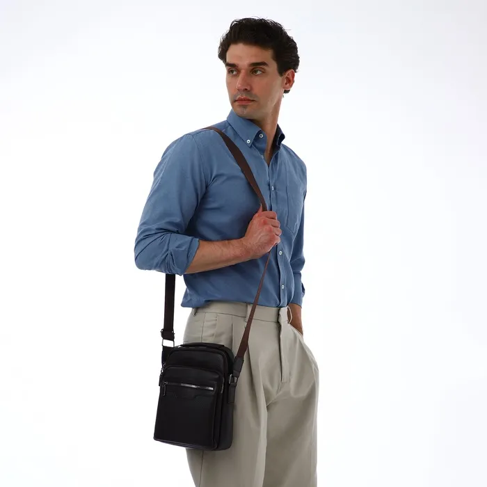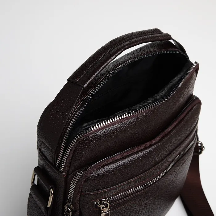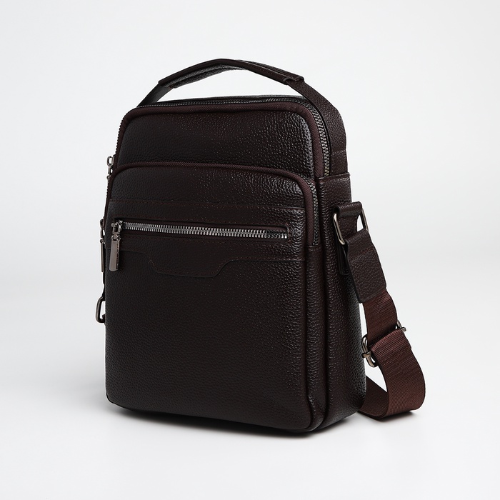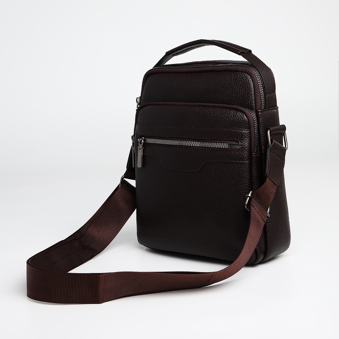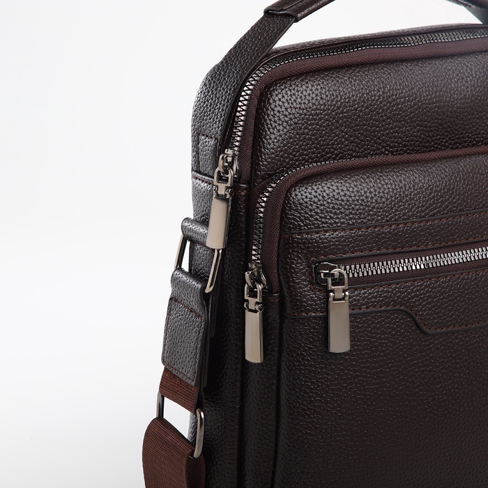Сумка мужская через плечо на молнии TEXTURA, 3 наружных кармана, коричневая — Характеристики