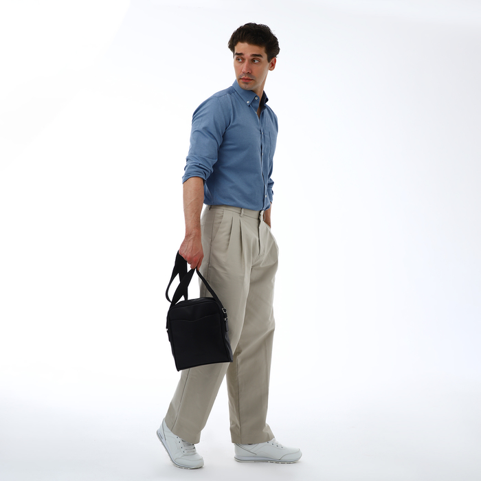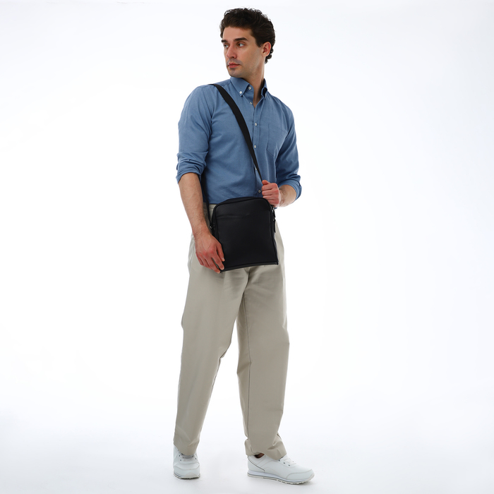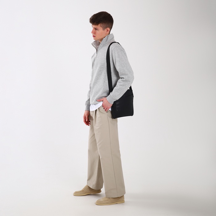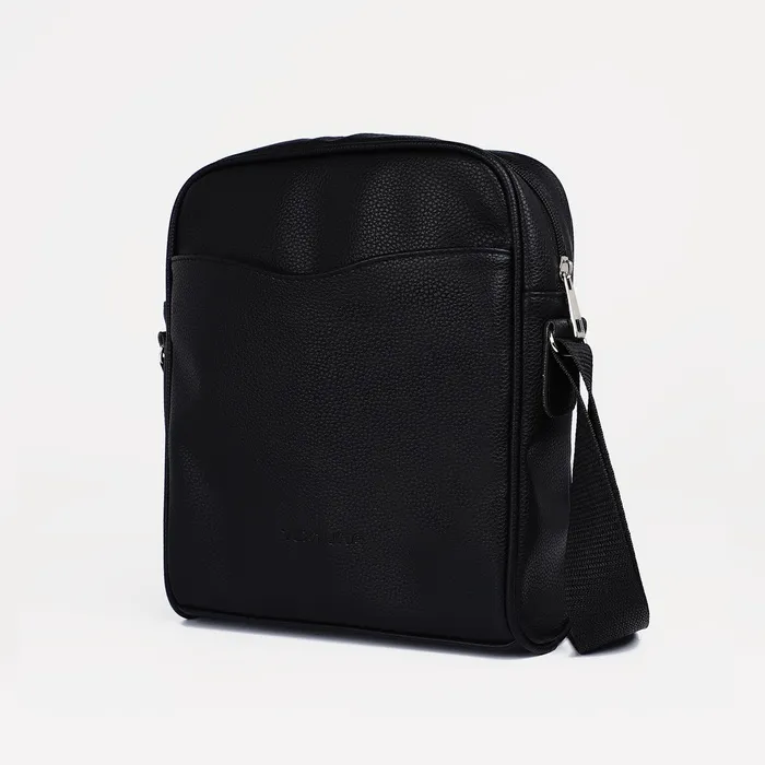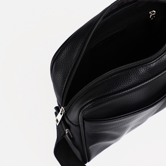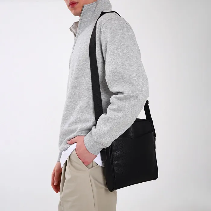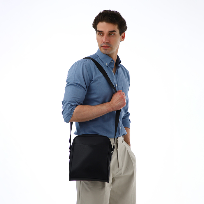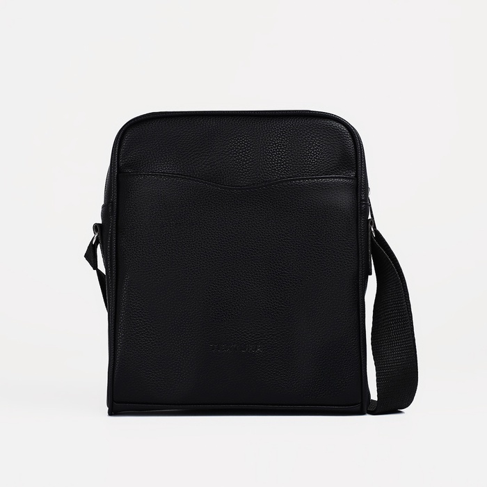 Сумка мужская через плечо на молнии TEXTURA, наружный карман, чёрная — Характеристики