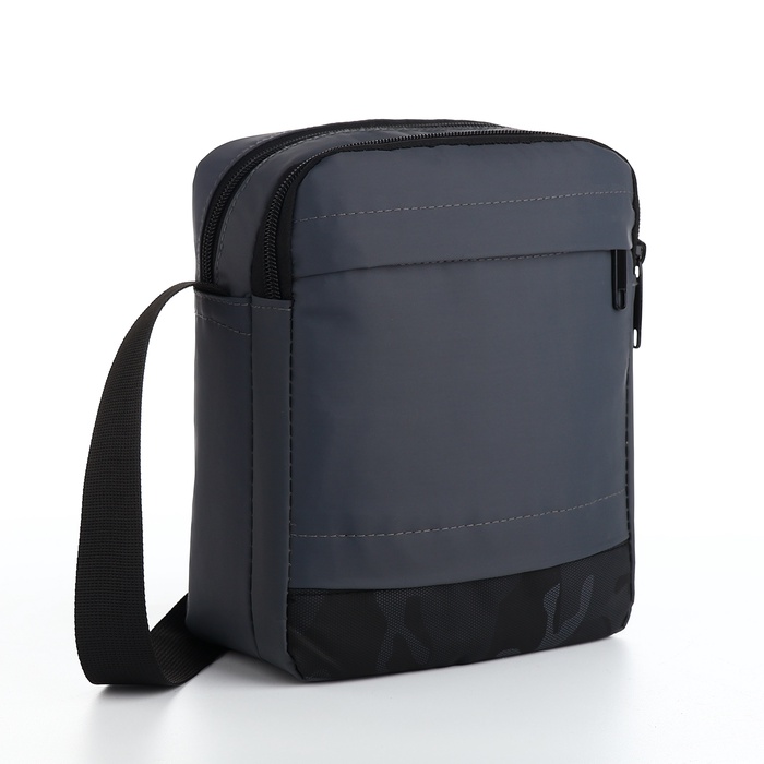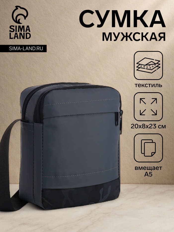 Сумка мужская через плечо, наружный карман, 20×8×23 см, серая — Характеристики