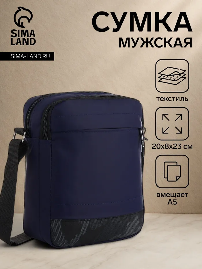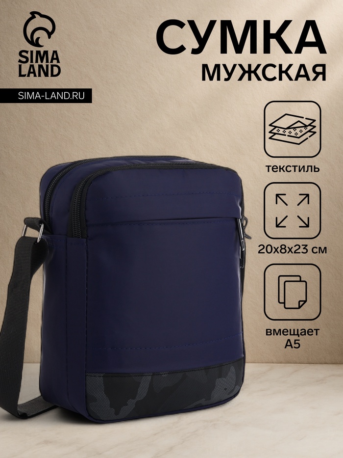 Сумка мужская через плечо, наружный карман, 20×8×23 см, синяя — Характеристики