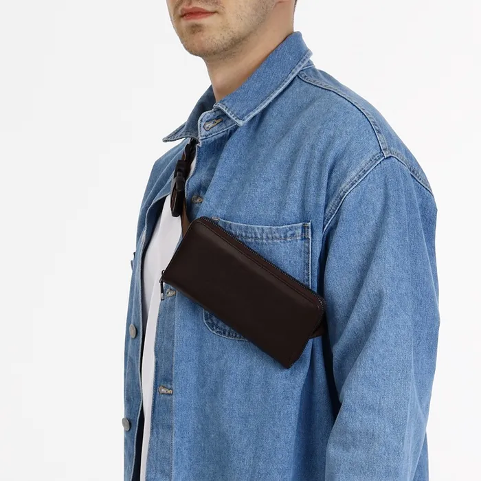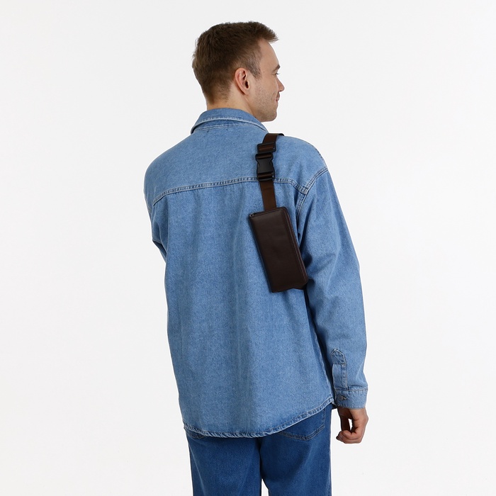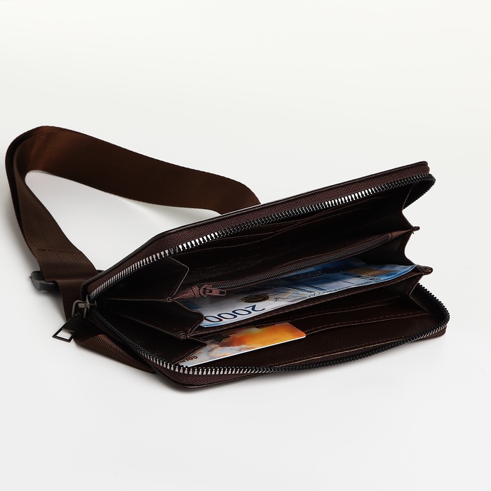 Сумка мужская через плечо TEXTURA, портмоне - клатч, на молнии, коричневая — Характеристики