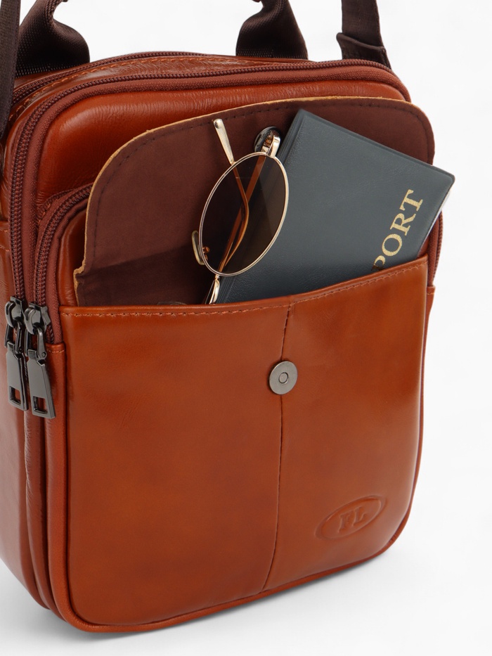 Сумка становится органичной частью вашего стиля. Вмещает телефон, кошелёк, ключи и документы — всё, что нужно под рукой. Универсальный коричневый цвет и сдержанный дизайн гармонично сочетаются с повседневными и более строгими образами. Практичный выбор для подарка на День защитника Отечества: функционально, стильно и вне времени.