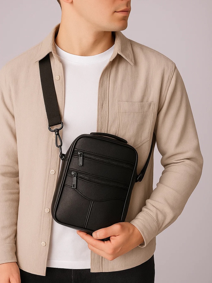 Эта мужская кожаная сумка через плечо сочетает в себе практичность и лаконичный стиль. Её компактный формат подходит для городской жизни, где важны мобильность и порядок в мелочах.