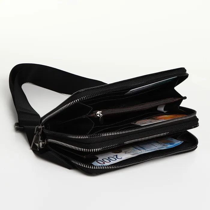Сумка мужская на плечо TEXTURA, портмоне - клатч, чёрная — Характеристики