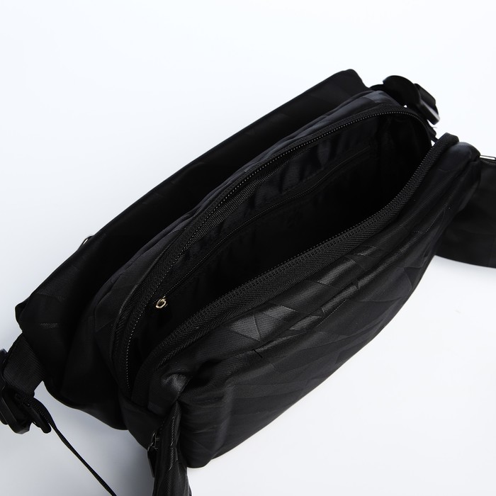 Сумка на одно плечо на молнии, с наружными карманами, 44×3×13 см, чёрная — Характеристики