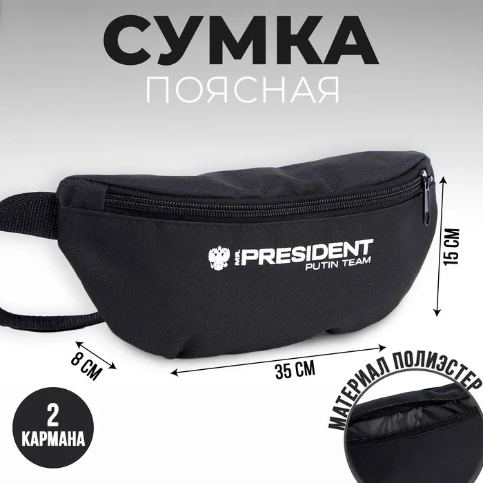 Сумка на пояс «Putin team», 32 x 8 x 15 cм, база, отд на молнии, черная — Характеристики