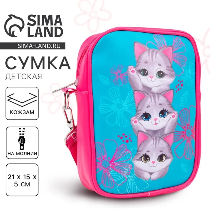 Сумка на ремешке детская для девочки «Три котенка», 15×5×21 — Характеристики