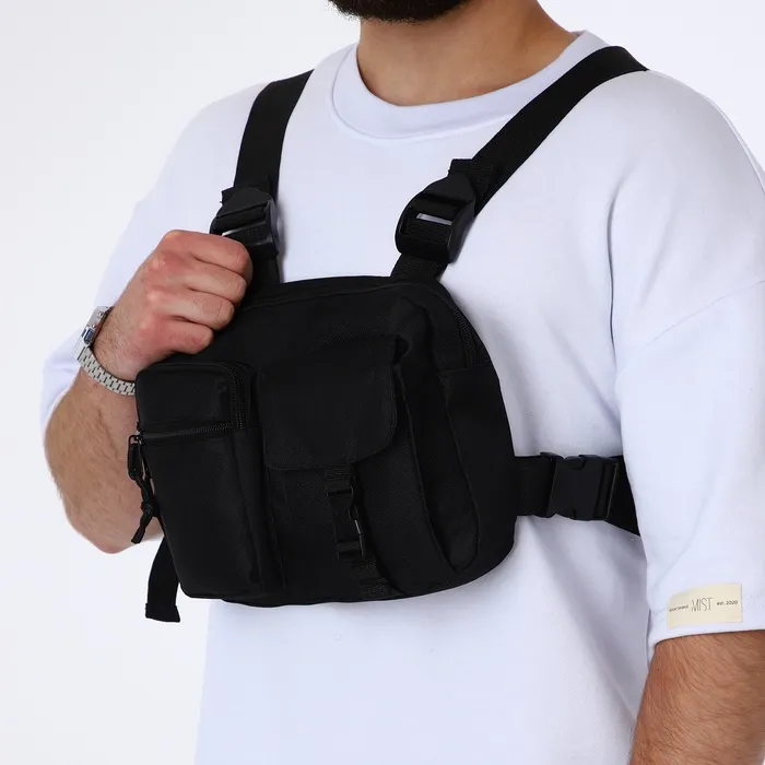 Сумка нагрудная на молнии, 2 наружных кармана, чёрная — Характеристики
