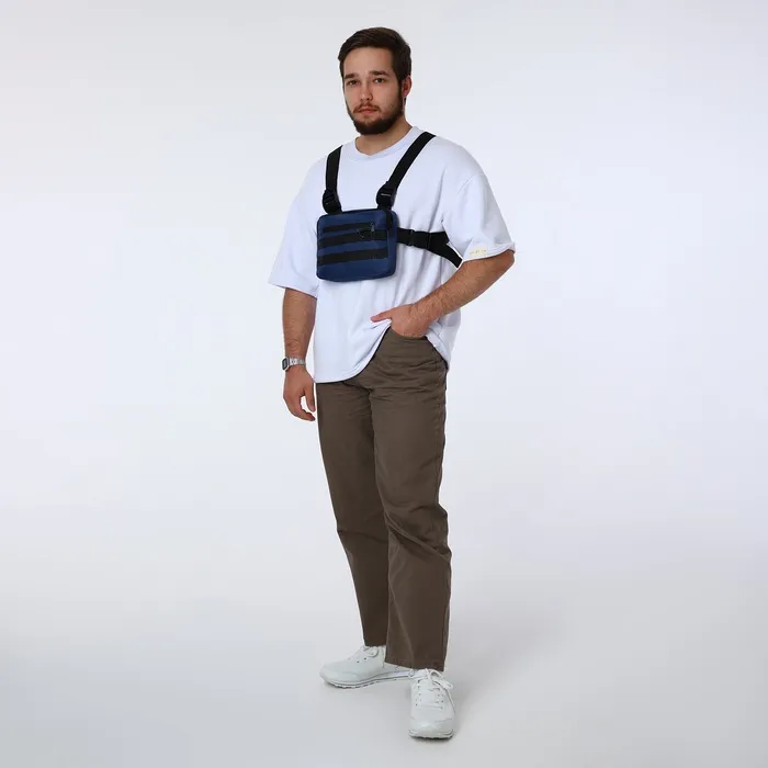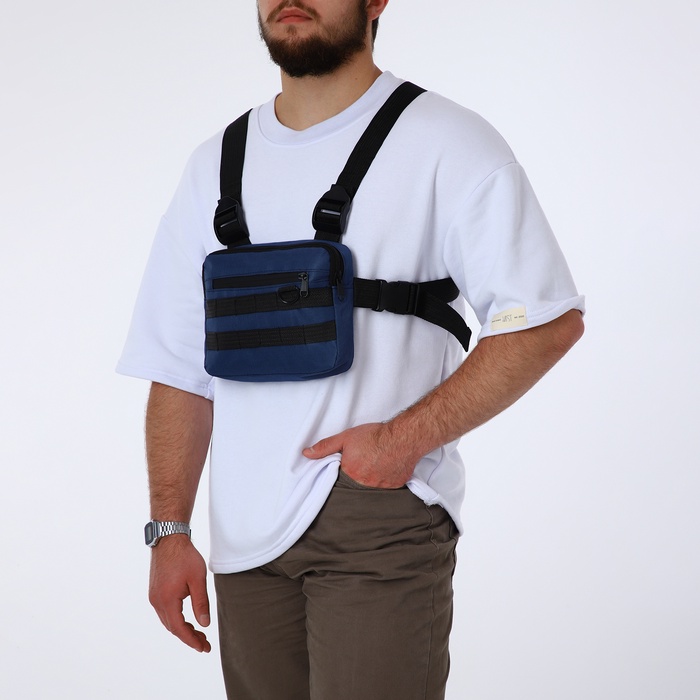 Сумка нагрудная на молнии, наружный карман, синяя — Характеристики