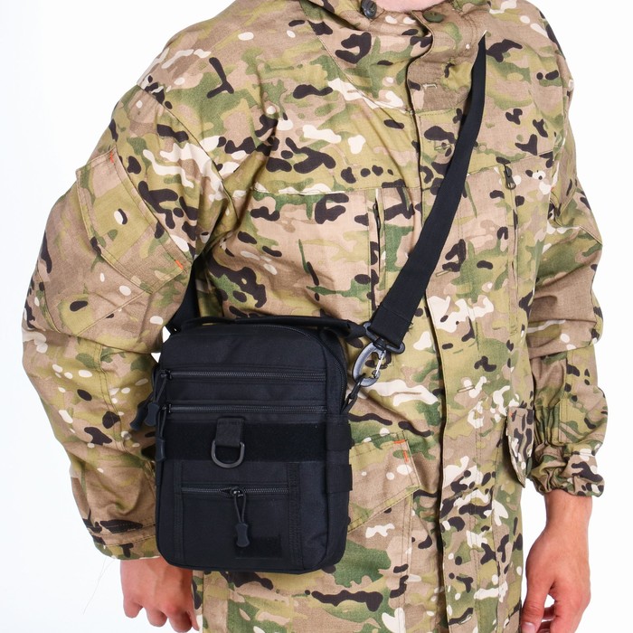 Термосумка на молнии, объём 8 л, наружный карман, регулируемый ремень, цвет чёрный