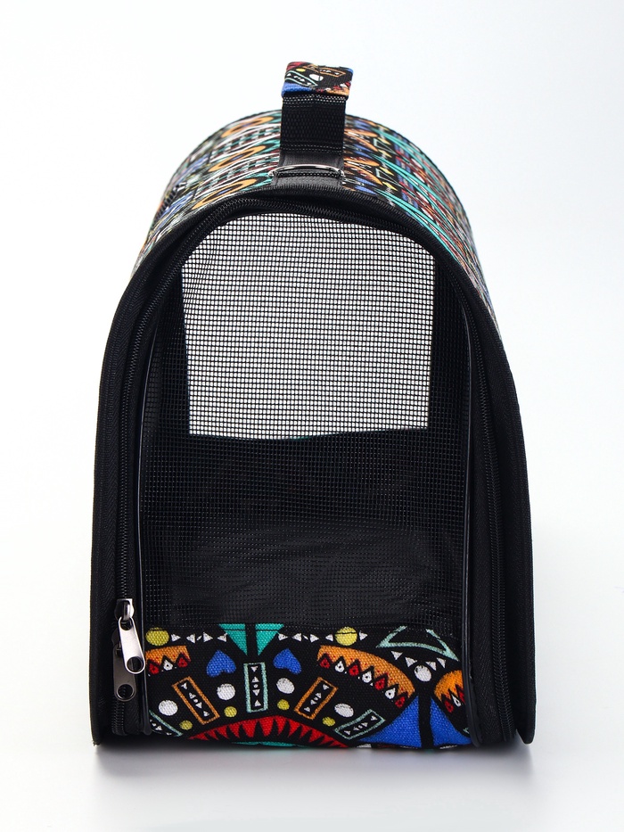 Сумка-переноска «Иллюзия» сочетает в себе функциональность и яркий дизайн. Её размеры (53×21×29 см) и нагрузка до 8 кг подходят для средних и крупных питомцев. Сетчатые вставки обеспечивают комфорт, а наплечный ремень делает переноску удобной для владельца.