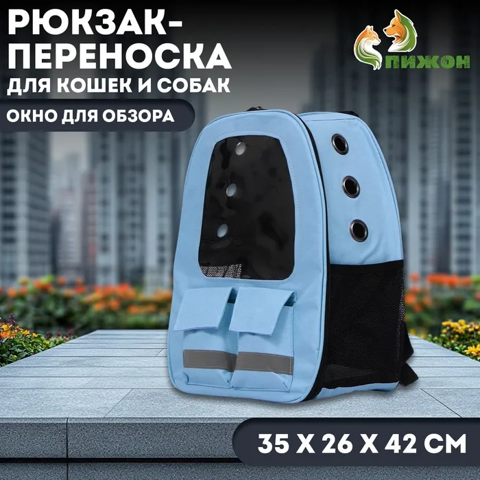 Сумка - переноска для животных "Путешественник", голубая, размер S, 37,5 х 17 х 22 см — Характеристики