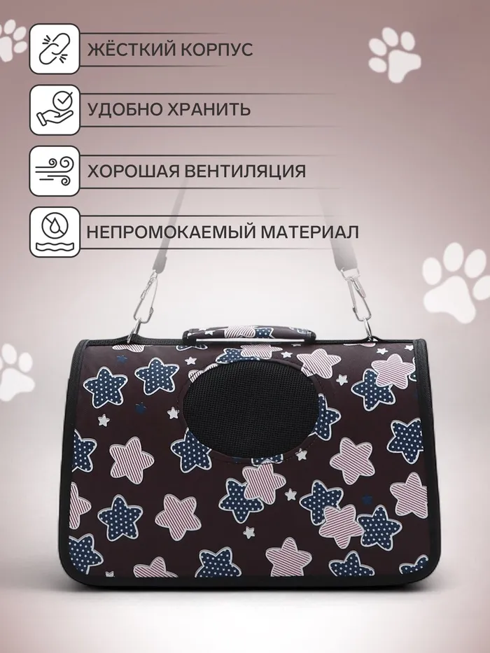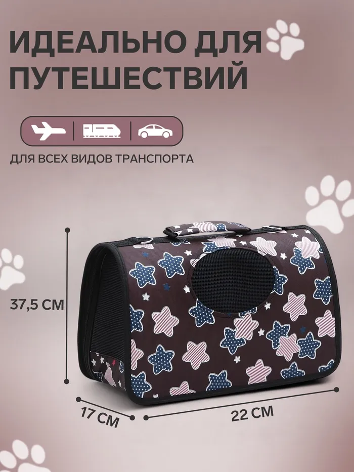 Сумка-переноска для животных "Star", размер S, 37,5 х 17 х 22 см, бордо — Характеристики